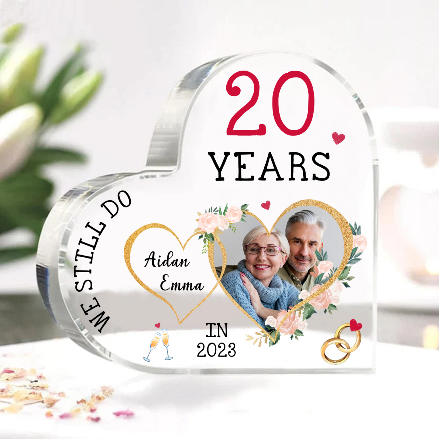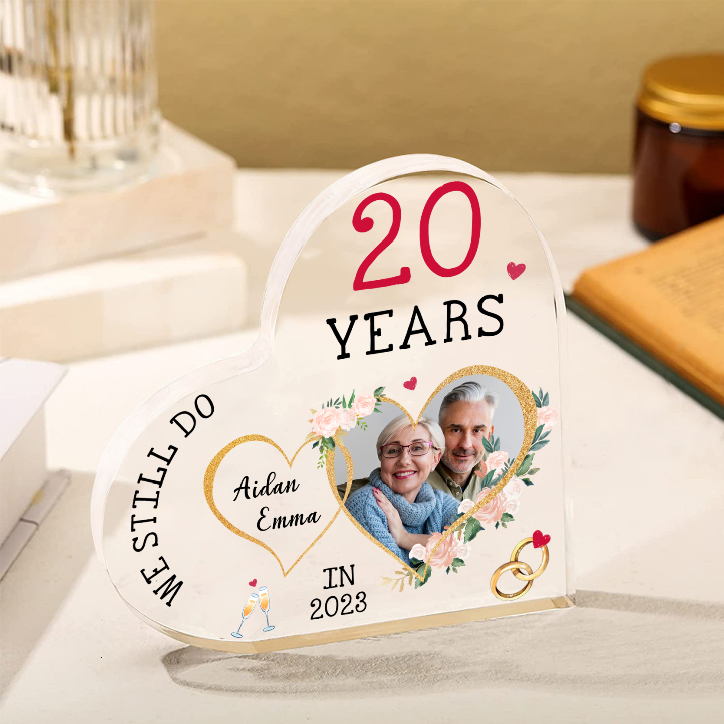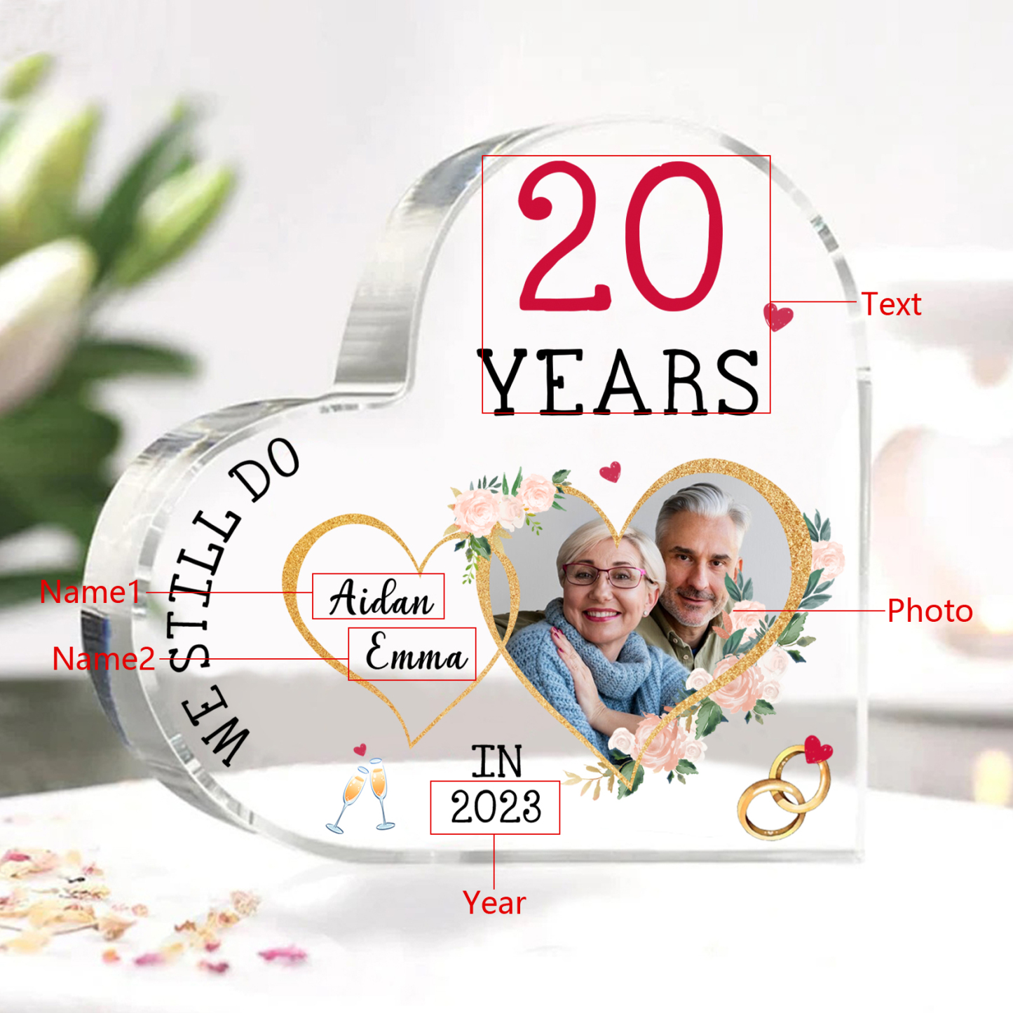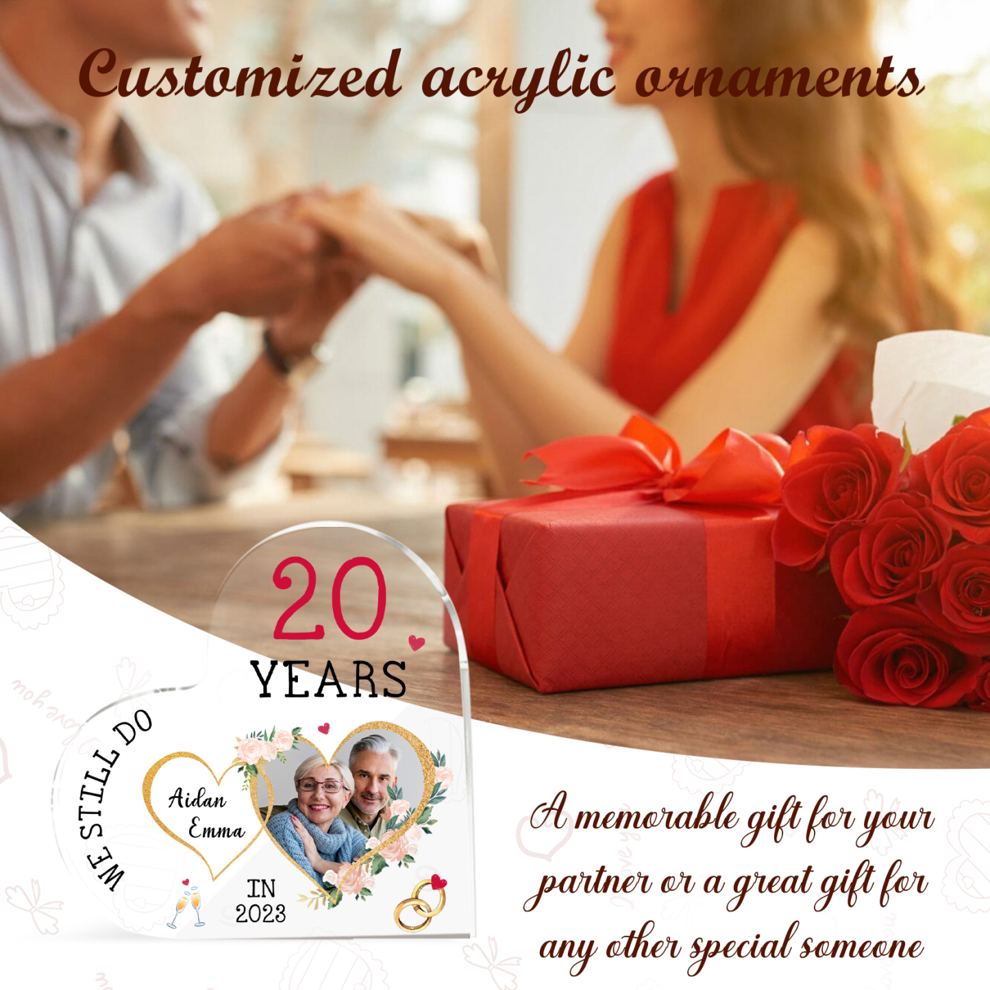 Personalised Name And Text Couple Acrylic Ornament Custom Photo Anniversary Acrylic Heart Keepsake Desktop Ornament for Couple
