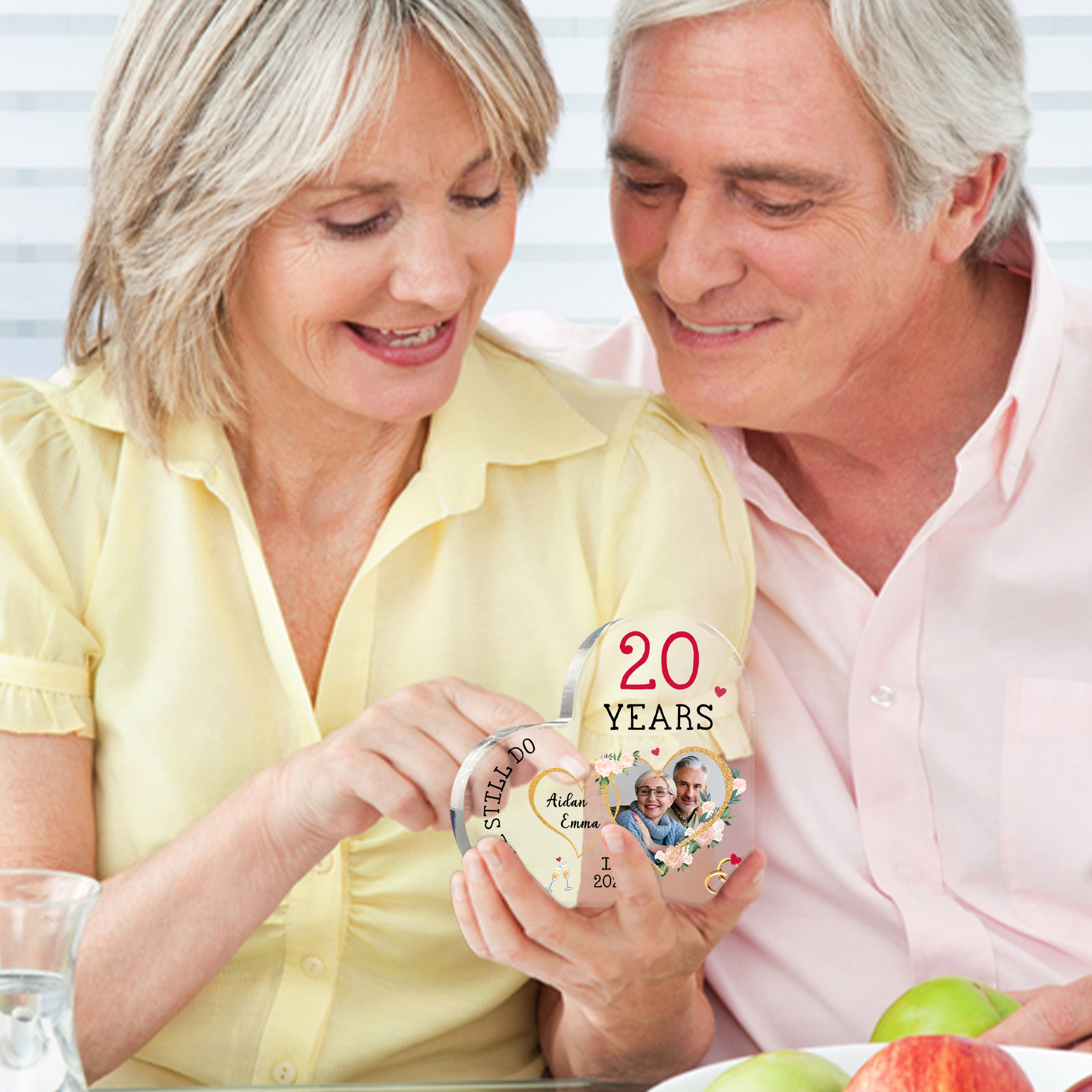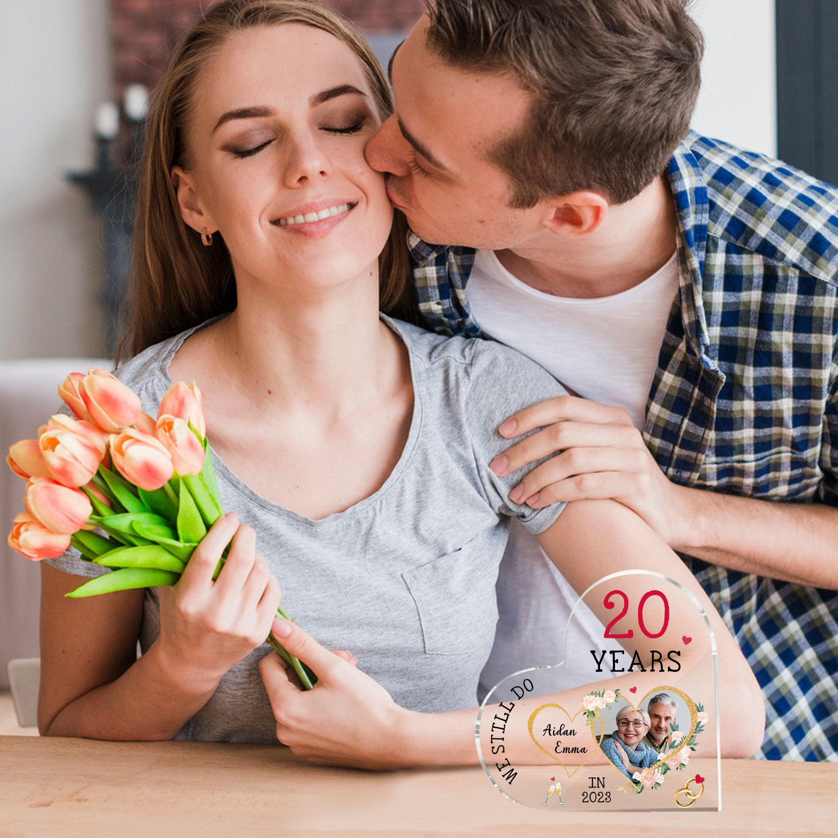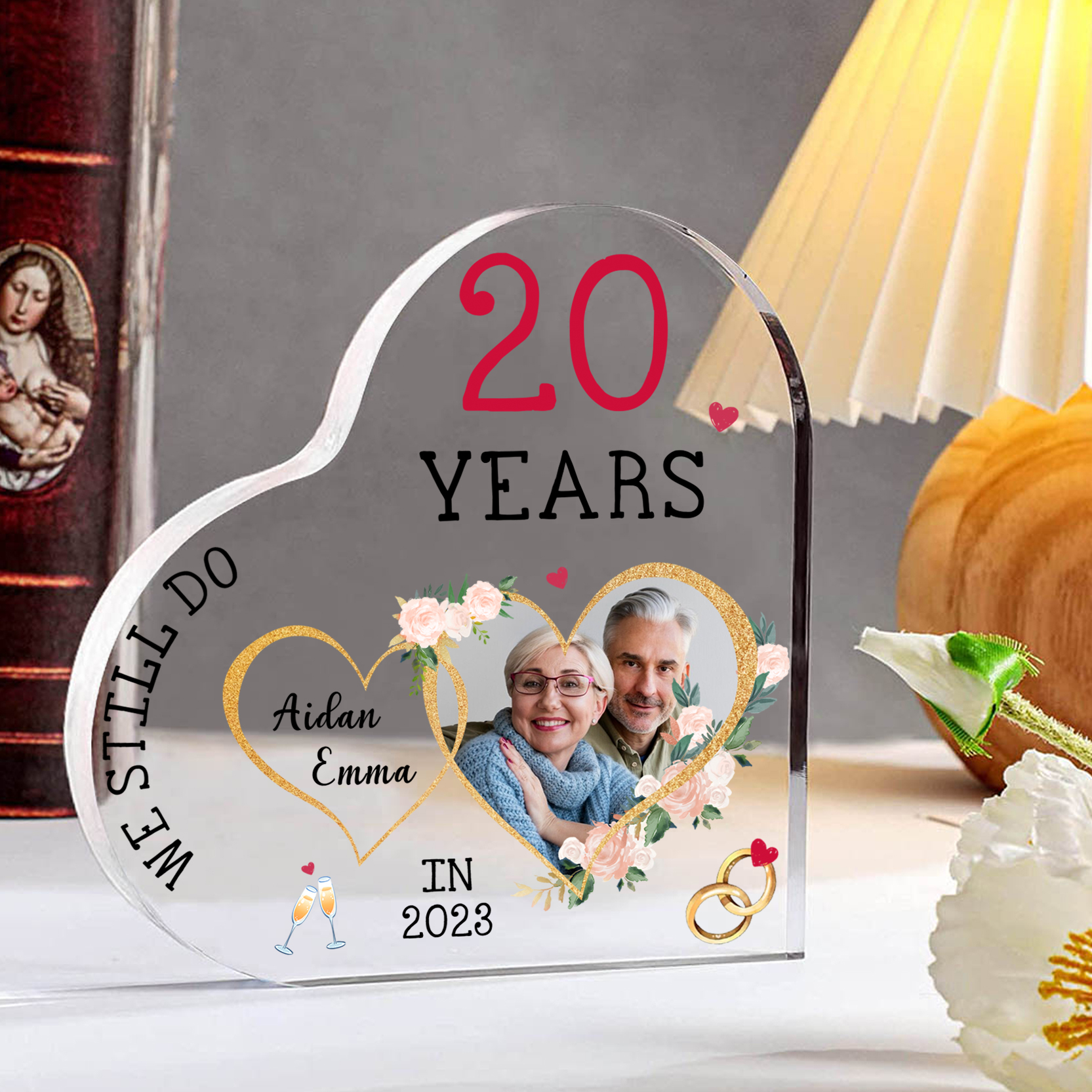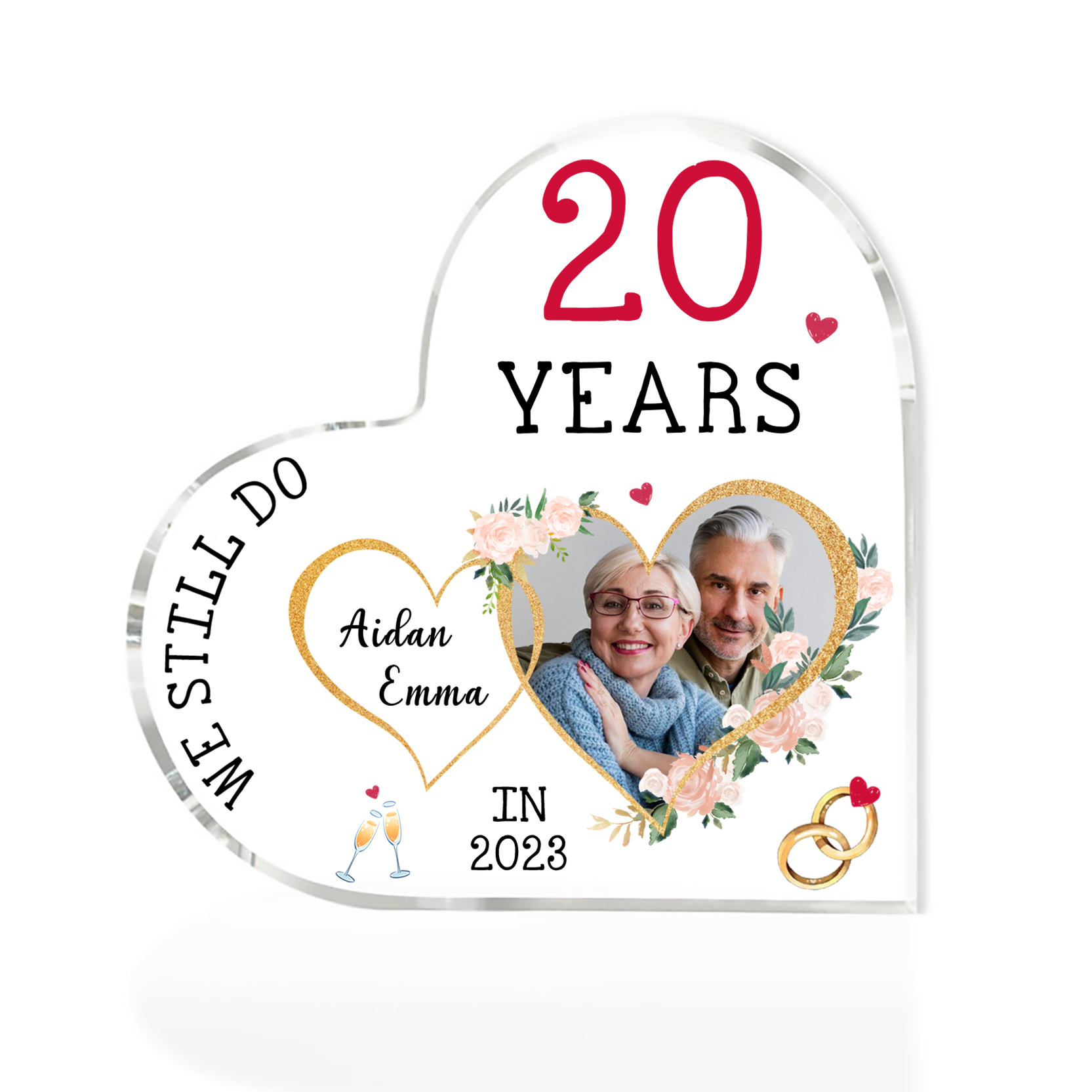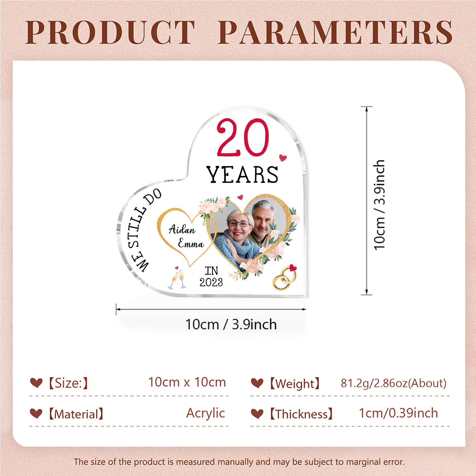 Personalised Name And Text Couple Acrylic Ornament Custom Photo Anniversary Acrylic Heart Keepsake Desktop Ornament for Couple