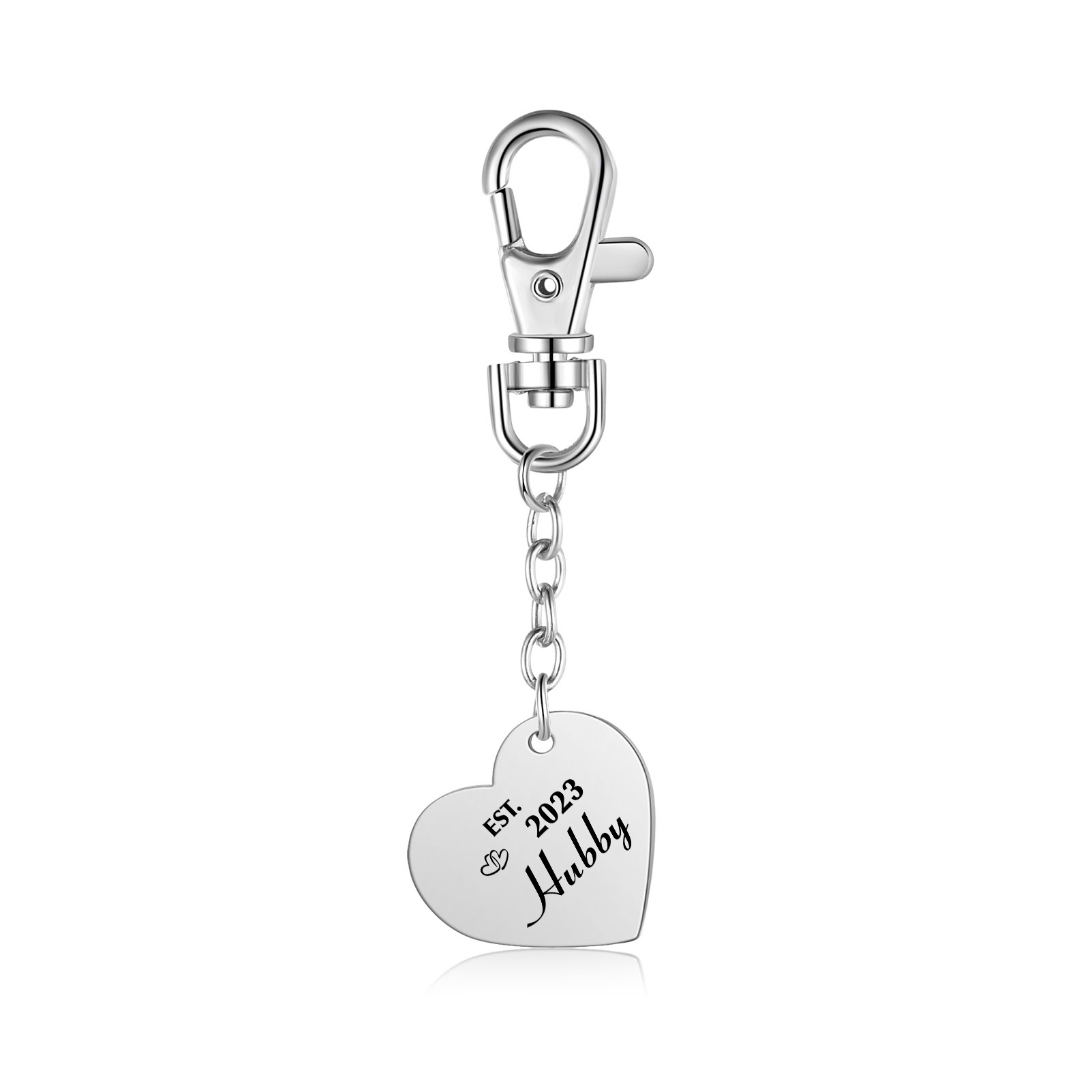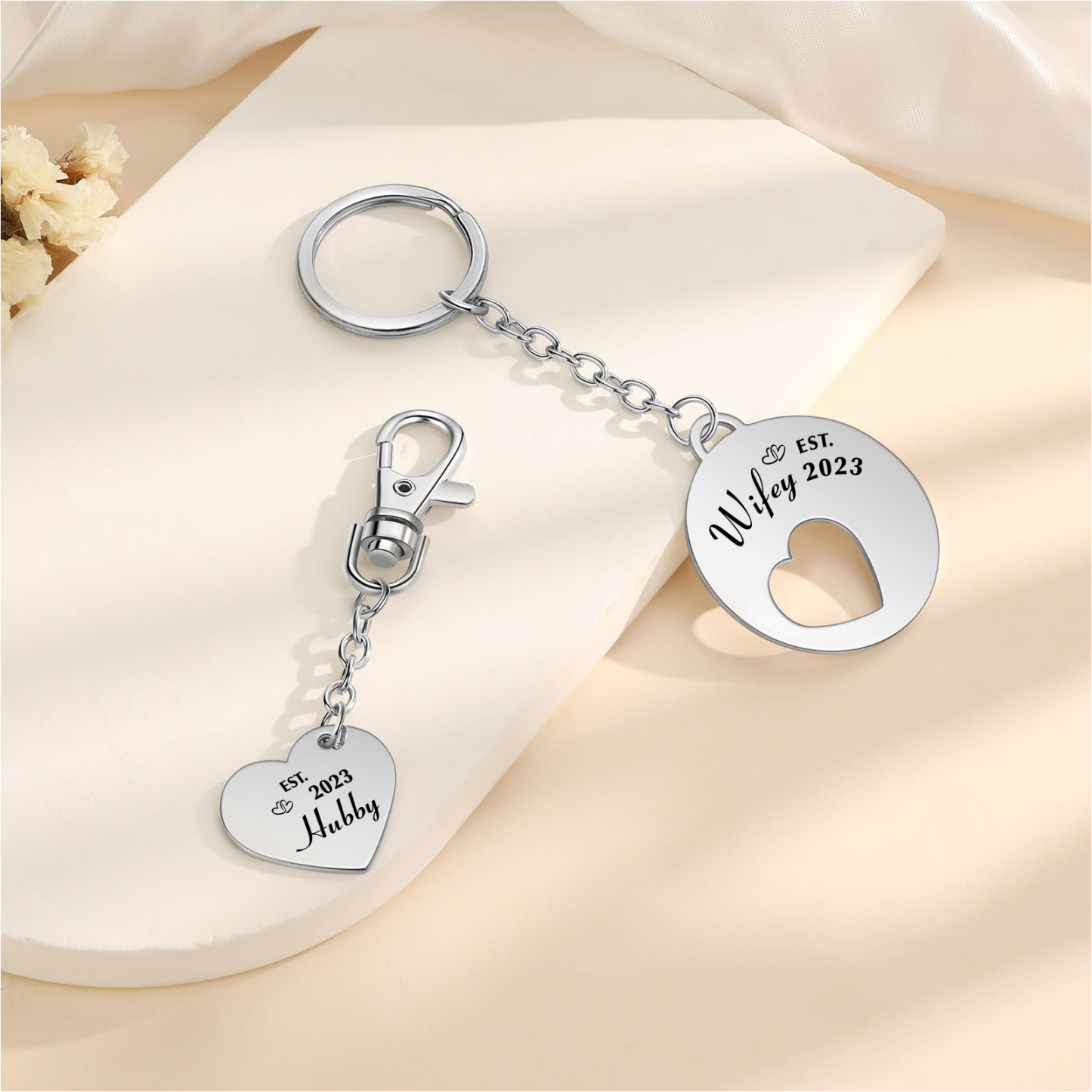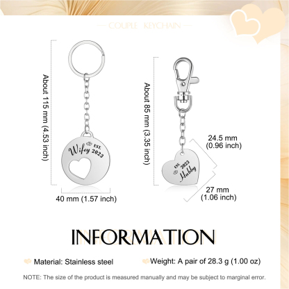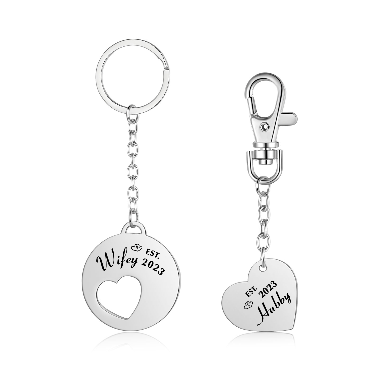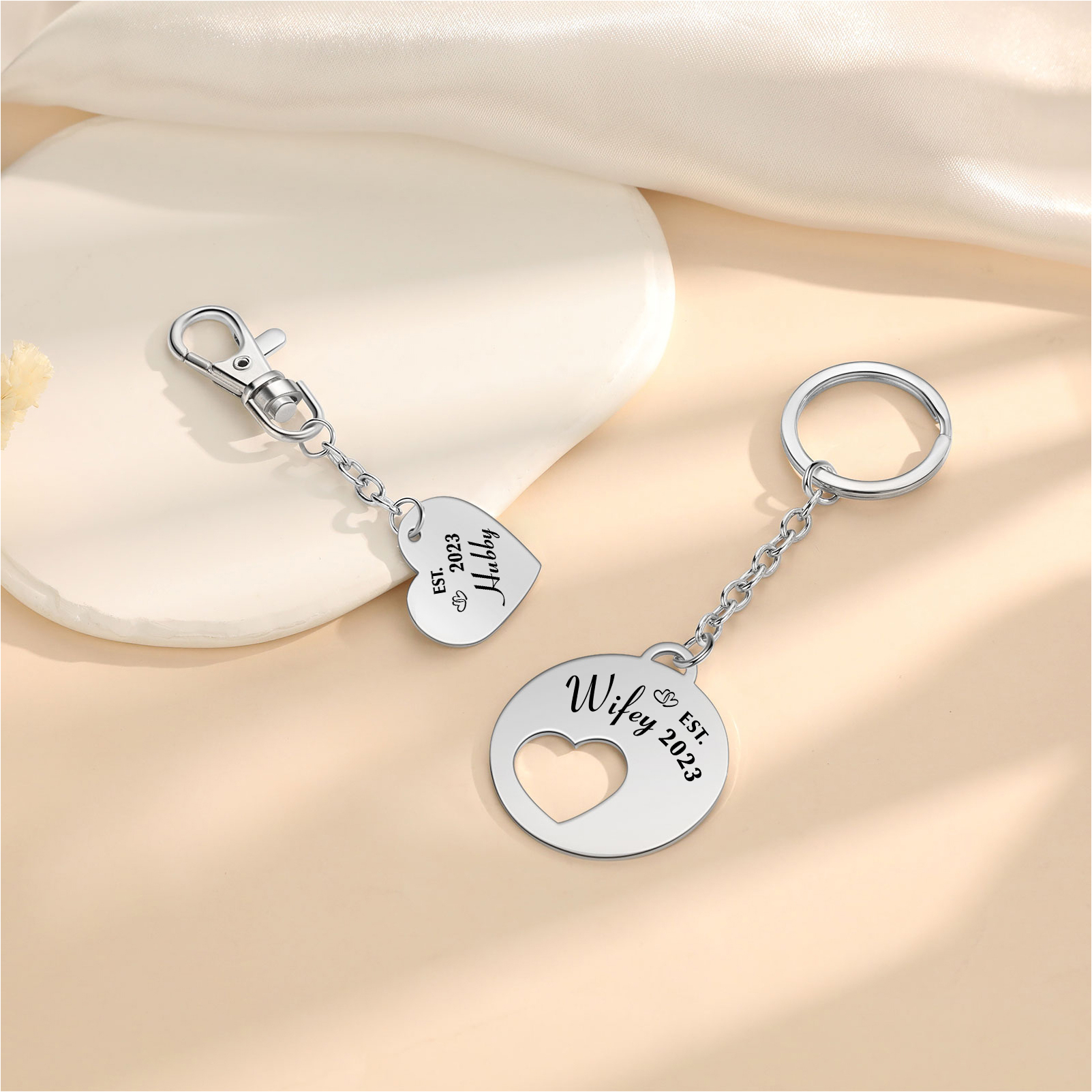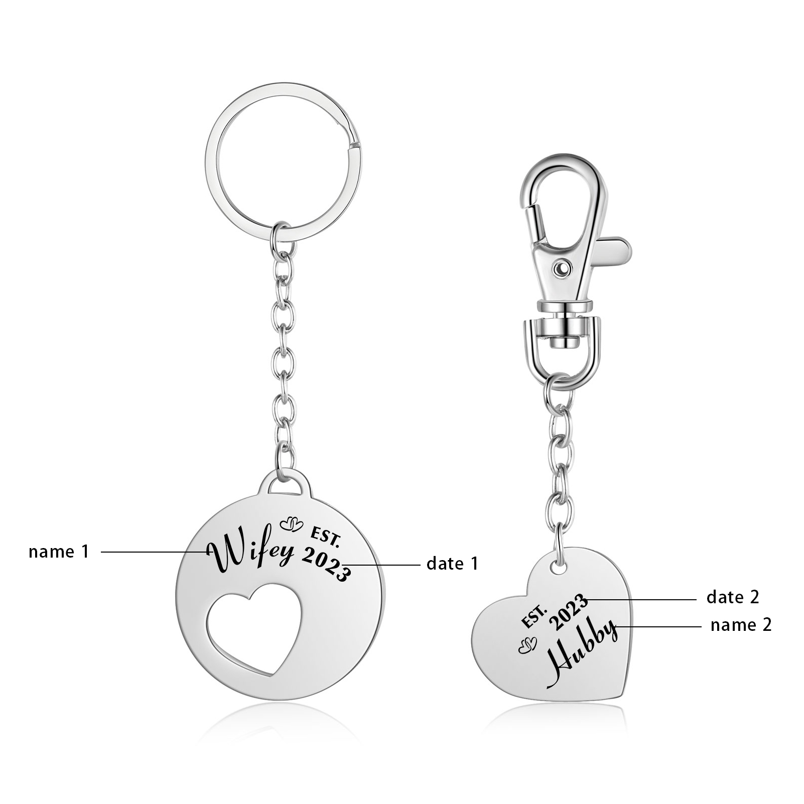 Personalised Name Combination Heart Couple Keyring Engrave Date Matching Couple Gifts, Special Gift For Him/Her