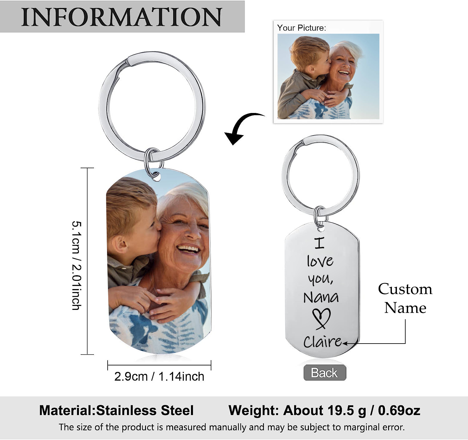 Personalised Nana Photo Keyring Gift-I Love You, Nana-Custom Special Keyring Gift For Grandma for Nan