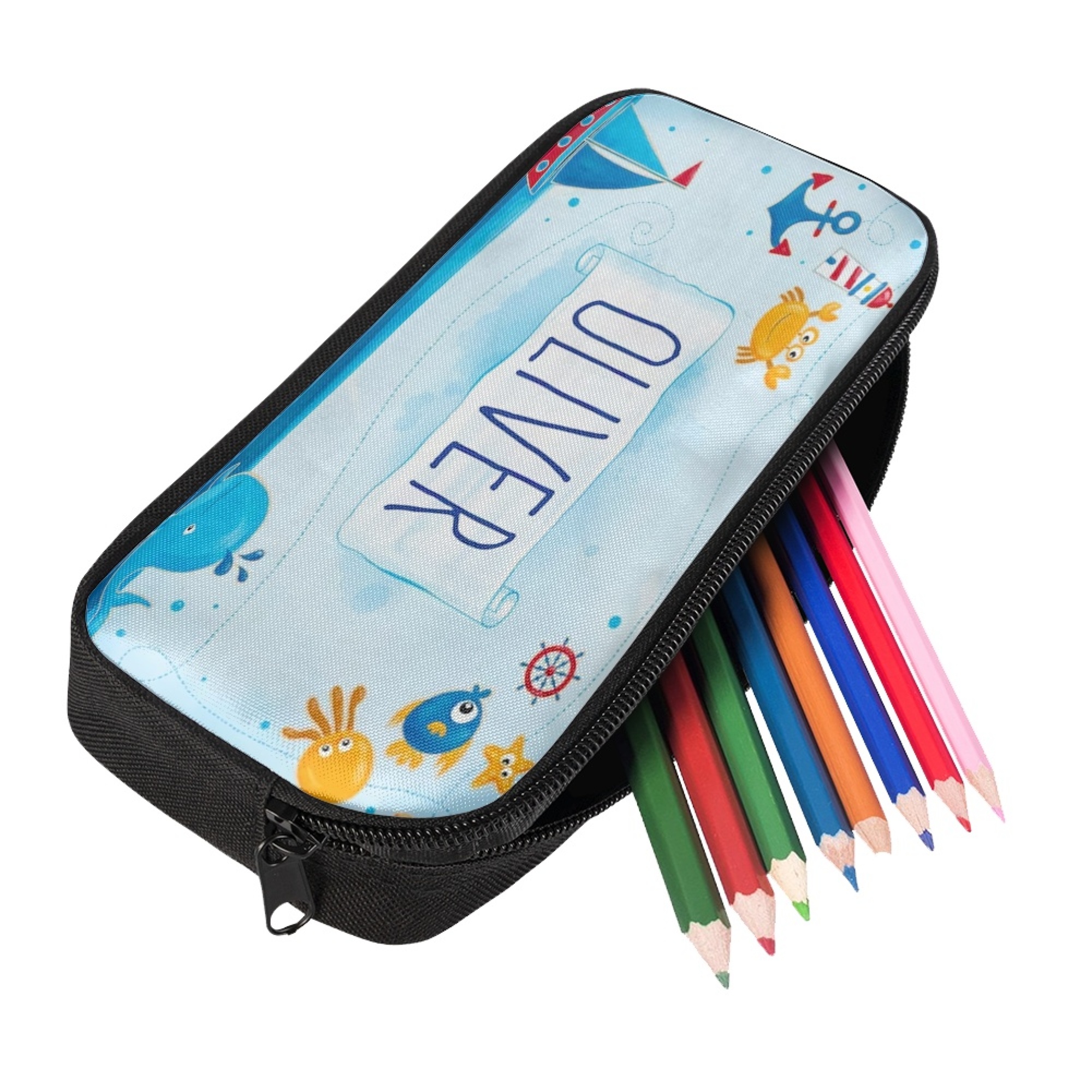 Personalised Ocean Pencil Case, Customized Name Pen Case For Kids, Back To School Gift