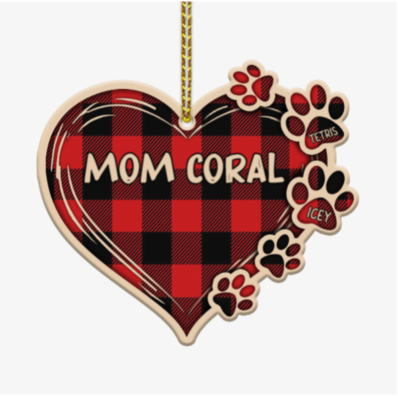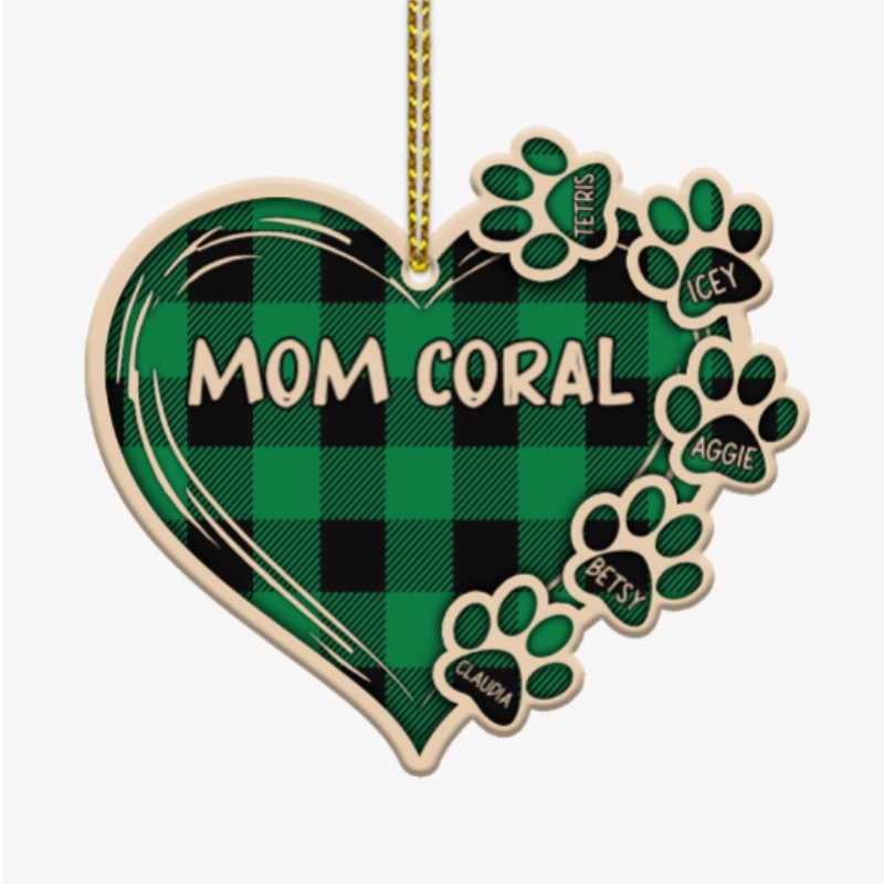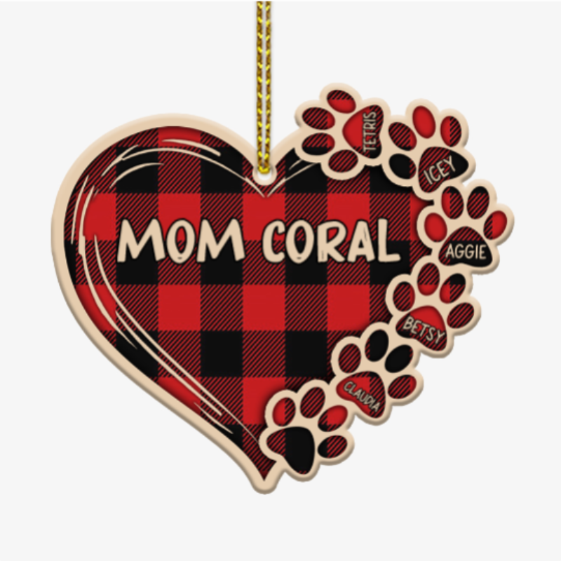 Personalised Pet Gift Custom 6 Names Wooden Paw Ornament Christmas Gift For Family