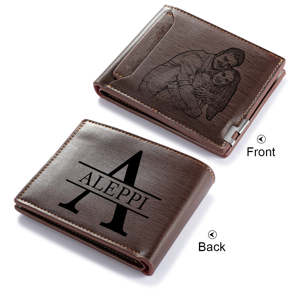 Personalised Photo Leather Men's Wallet With Card Slot Engraved Name And Letter Gift For Him