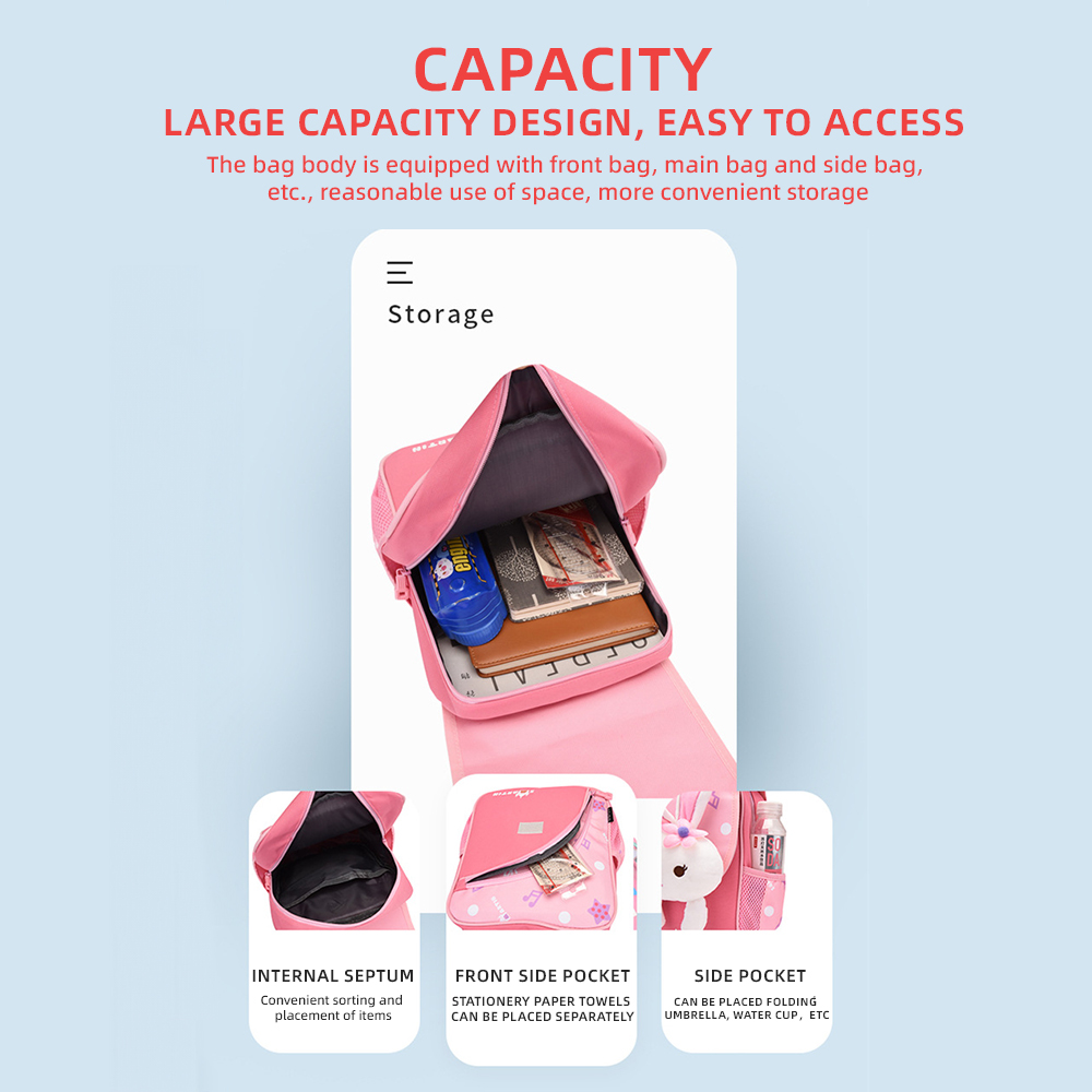 Personalised Pink Bunny Children School Bag Embroidery Name Black Backpack, Customized Schoolbag Travel Bag For Kids