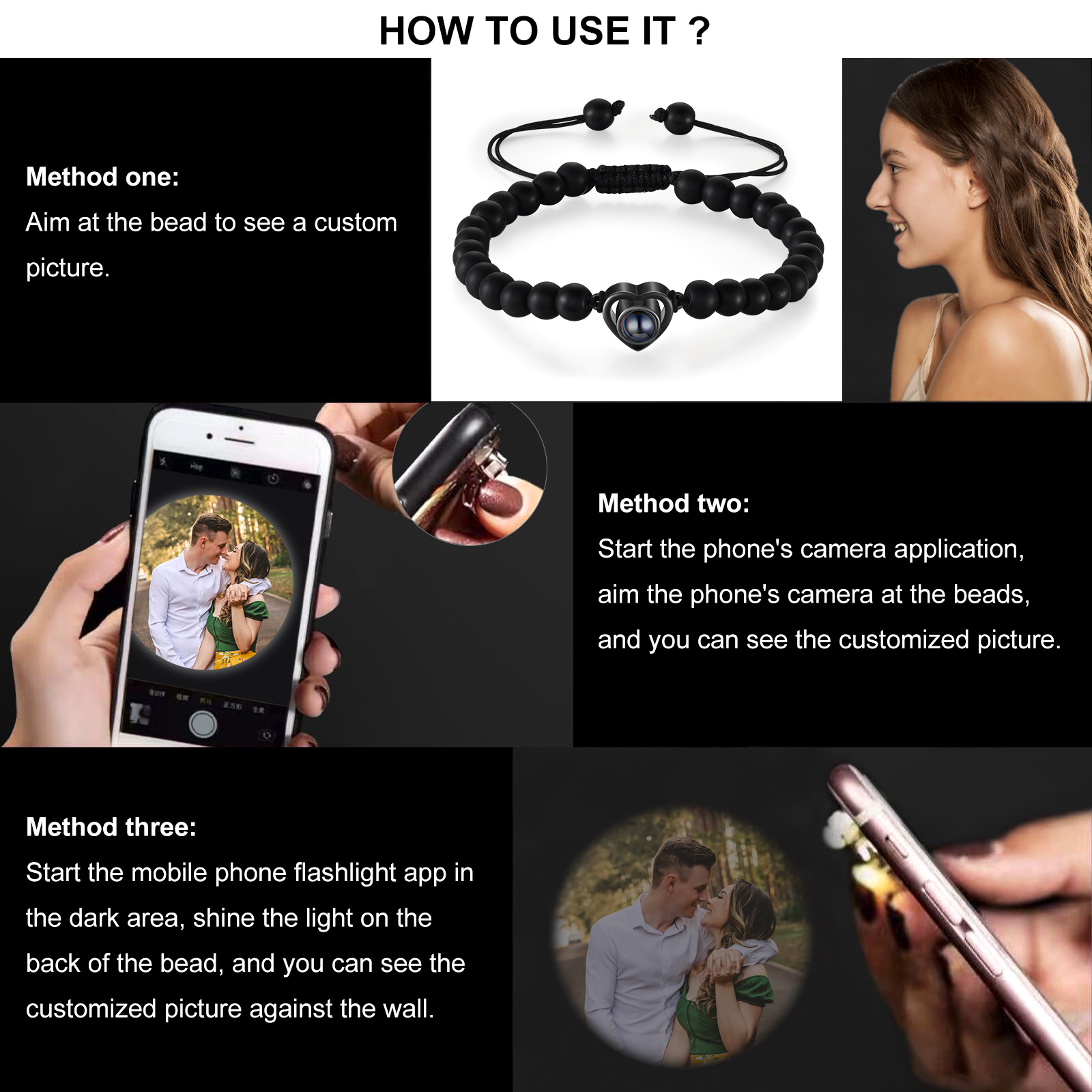 Personalised Projection Beaded Bracelet Customized Photo Bracelet Adjustable Bracelet Personalised Gift for Couples