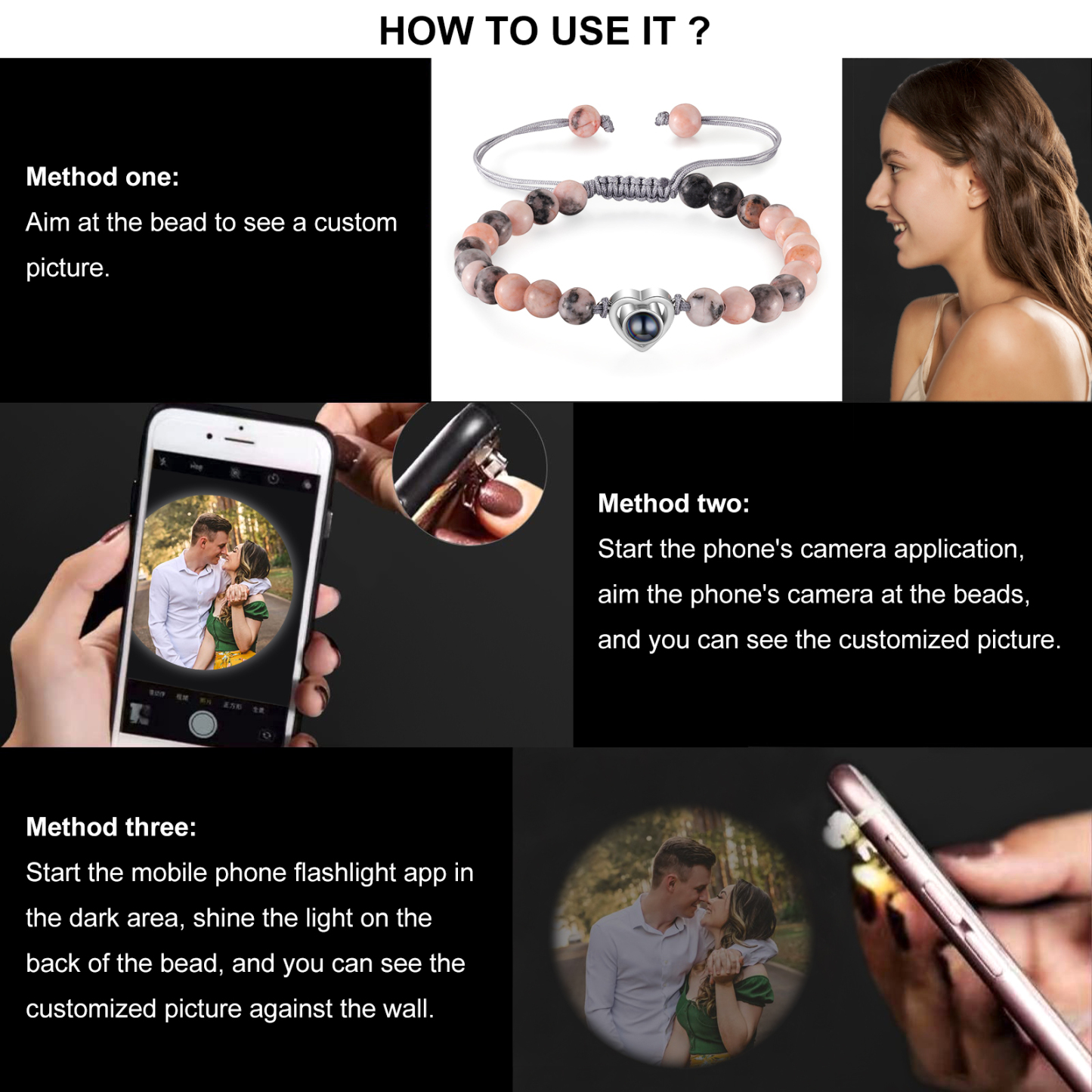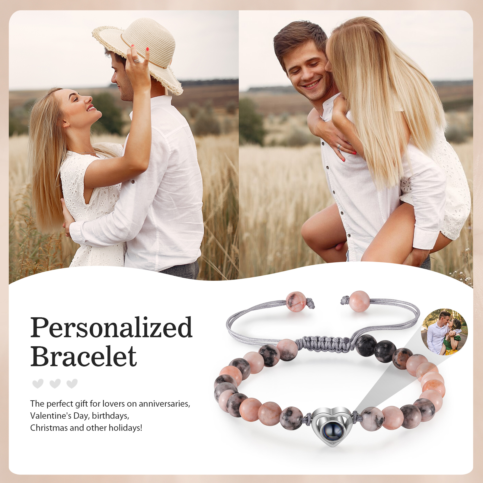 Personalised Projection Beaded Bracelet Customized Photo Bracelet Adjustable Bracelet Personalised Gift for Couples