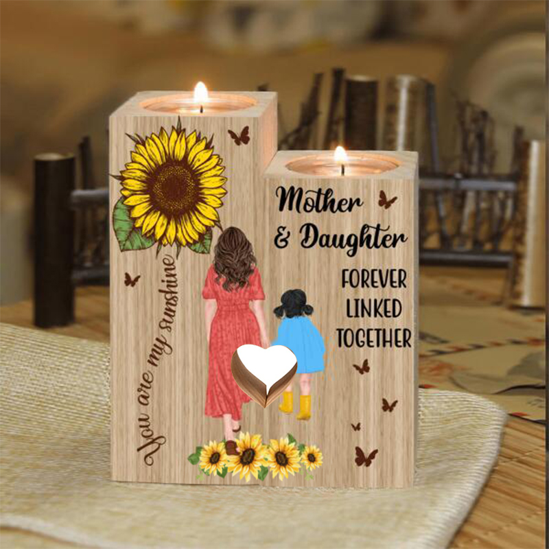 Personalised Sunflower Mother And Daughter Forever Linked Together Candle Holder