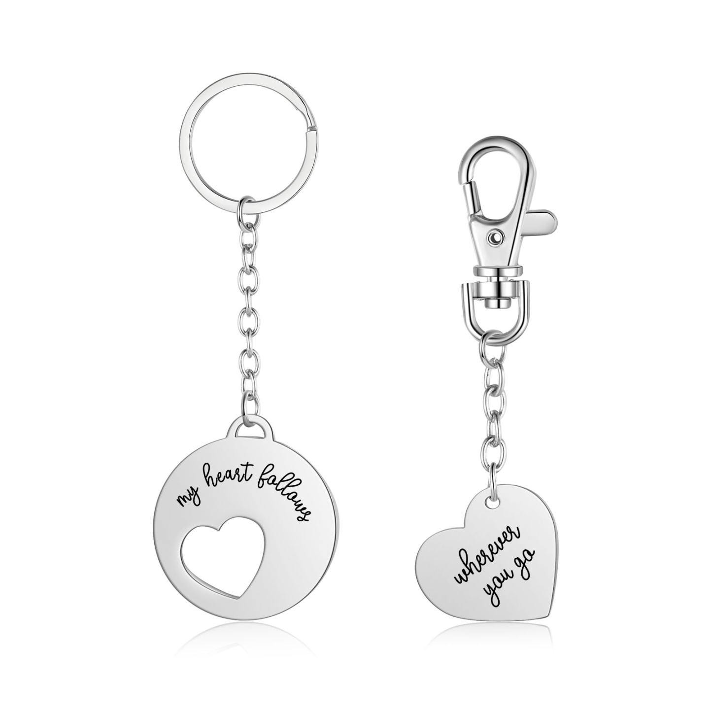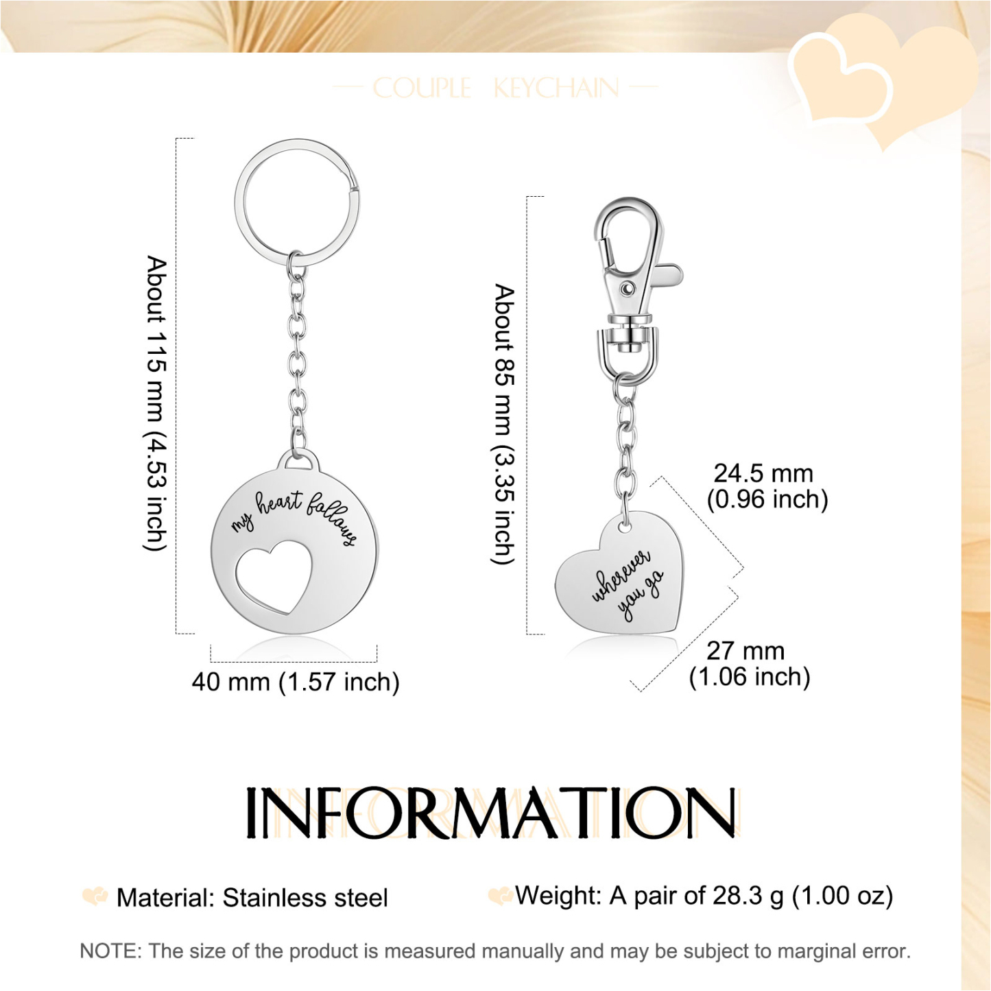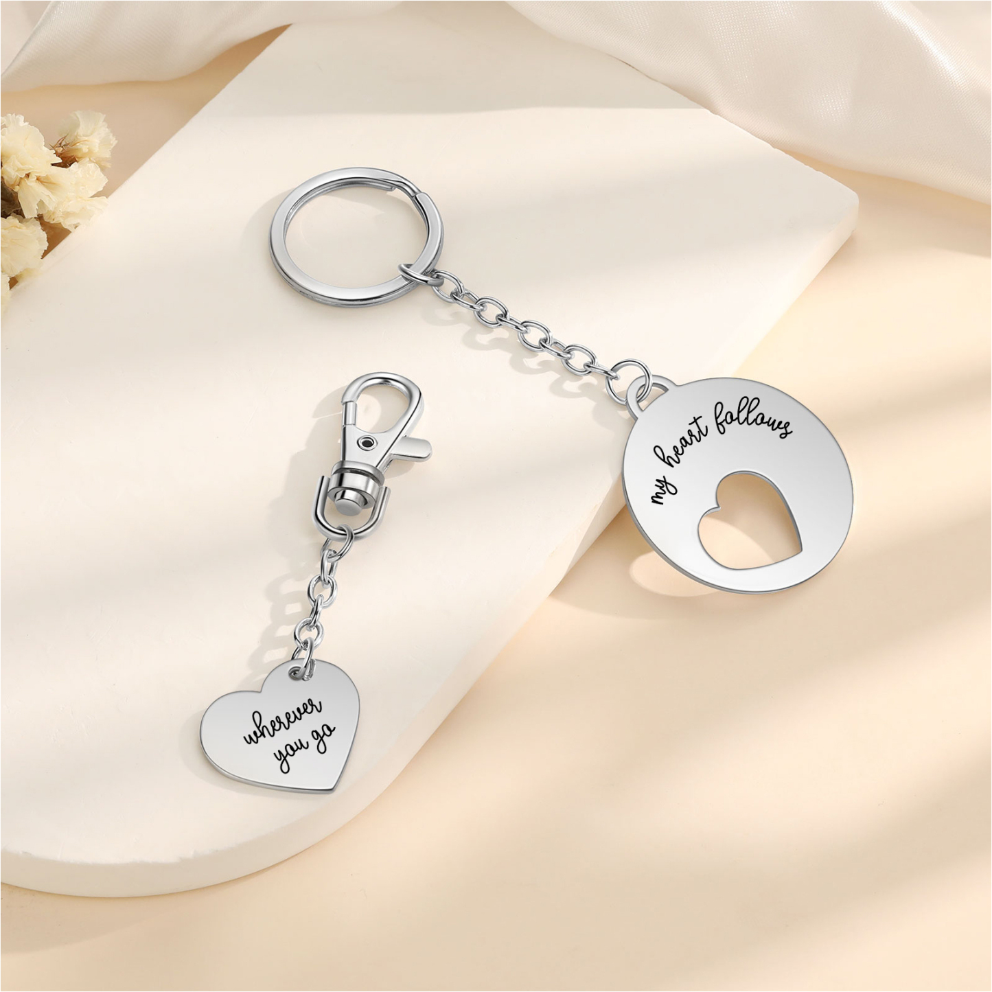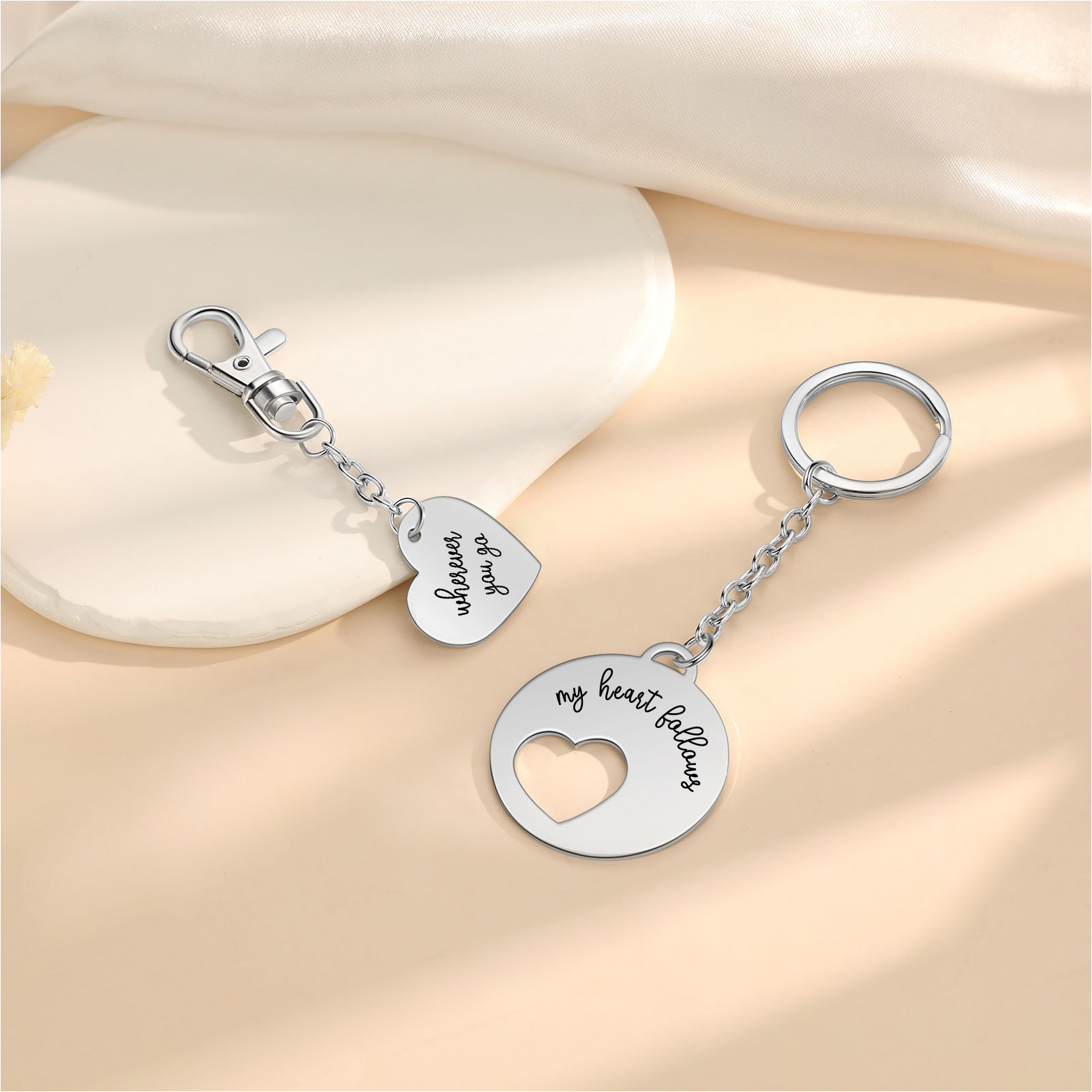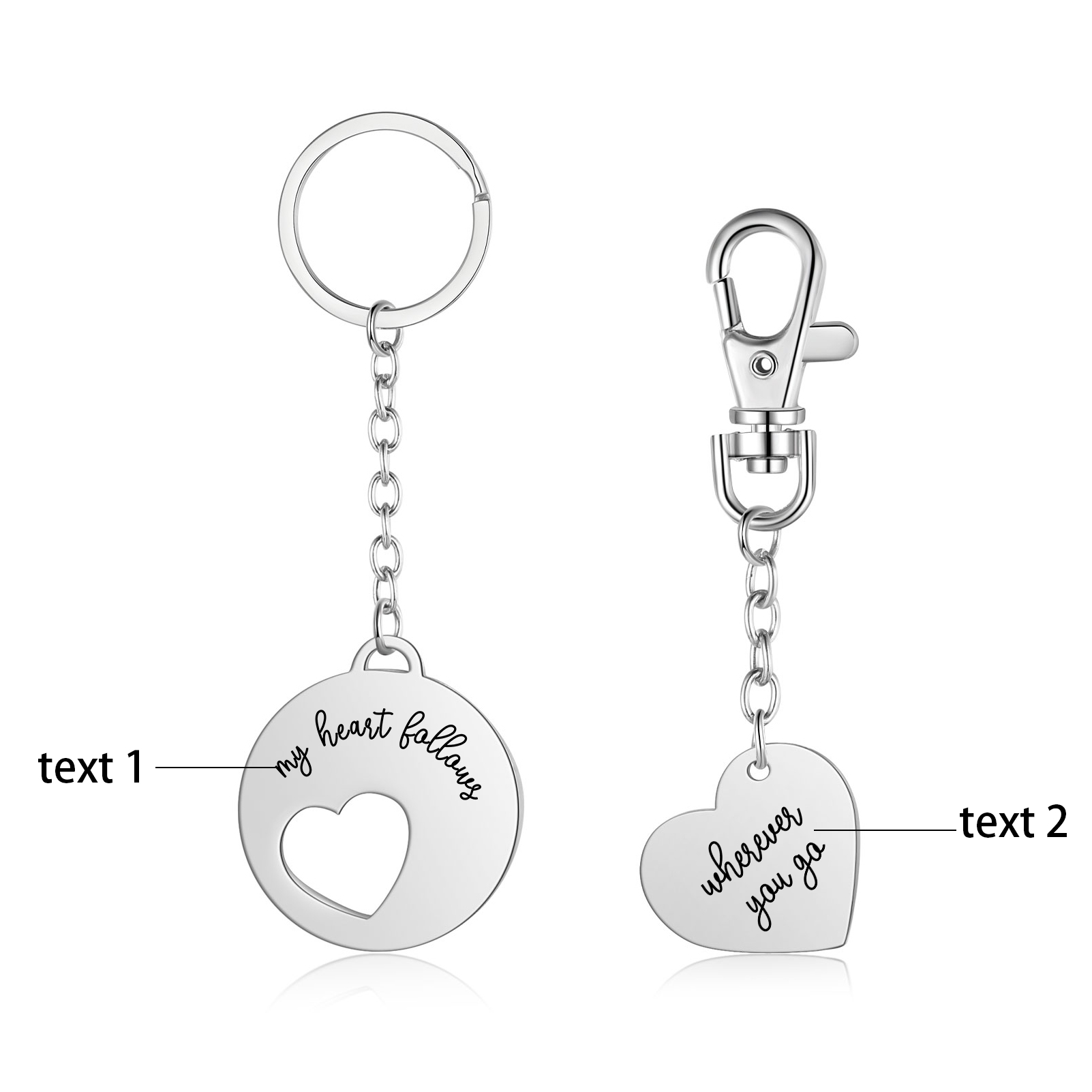 Personalised Text Combination Heart Couple Keyring Engrave Matching Couple Gifts, Special Gift For Him/Her