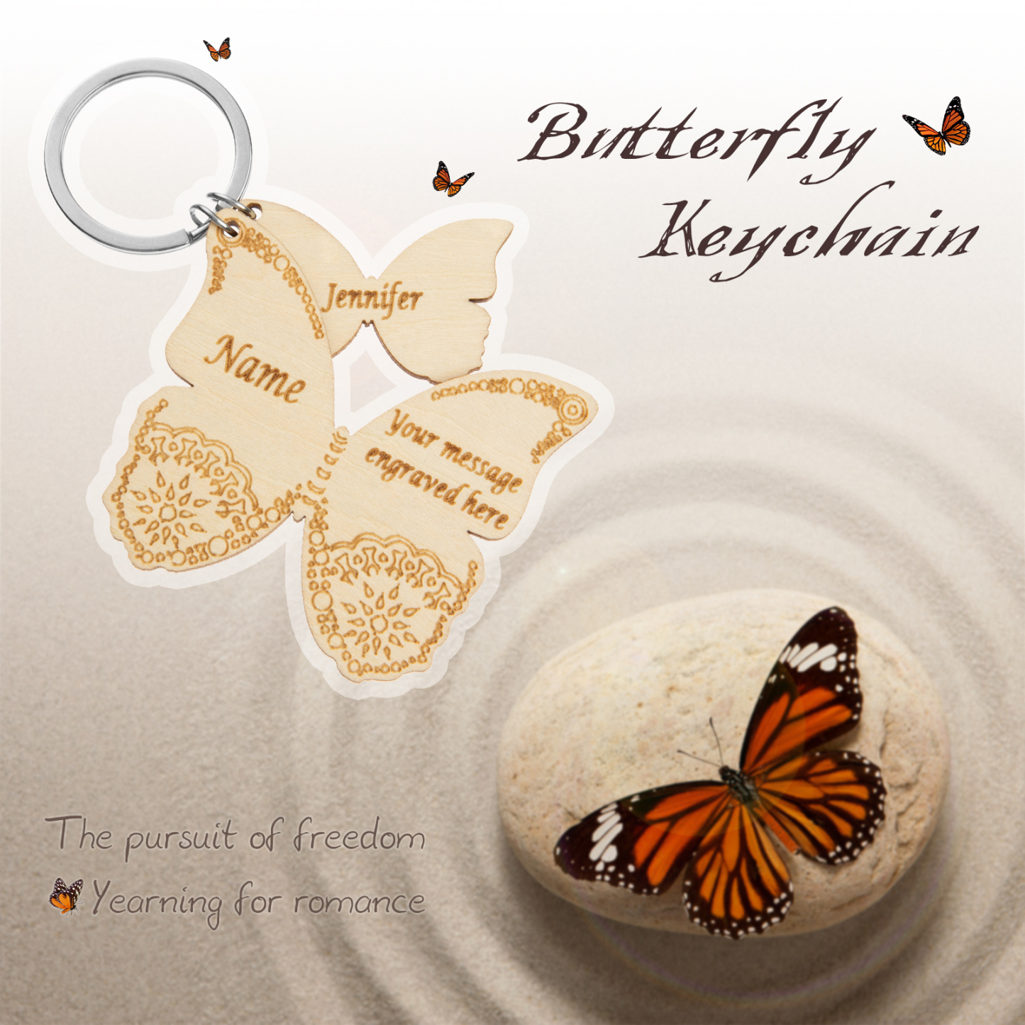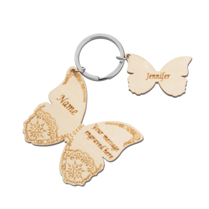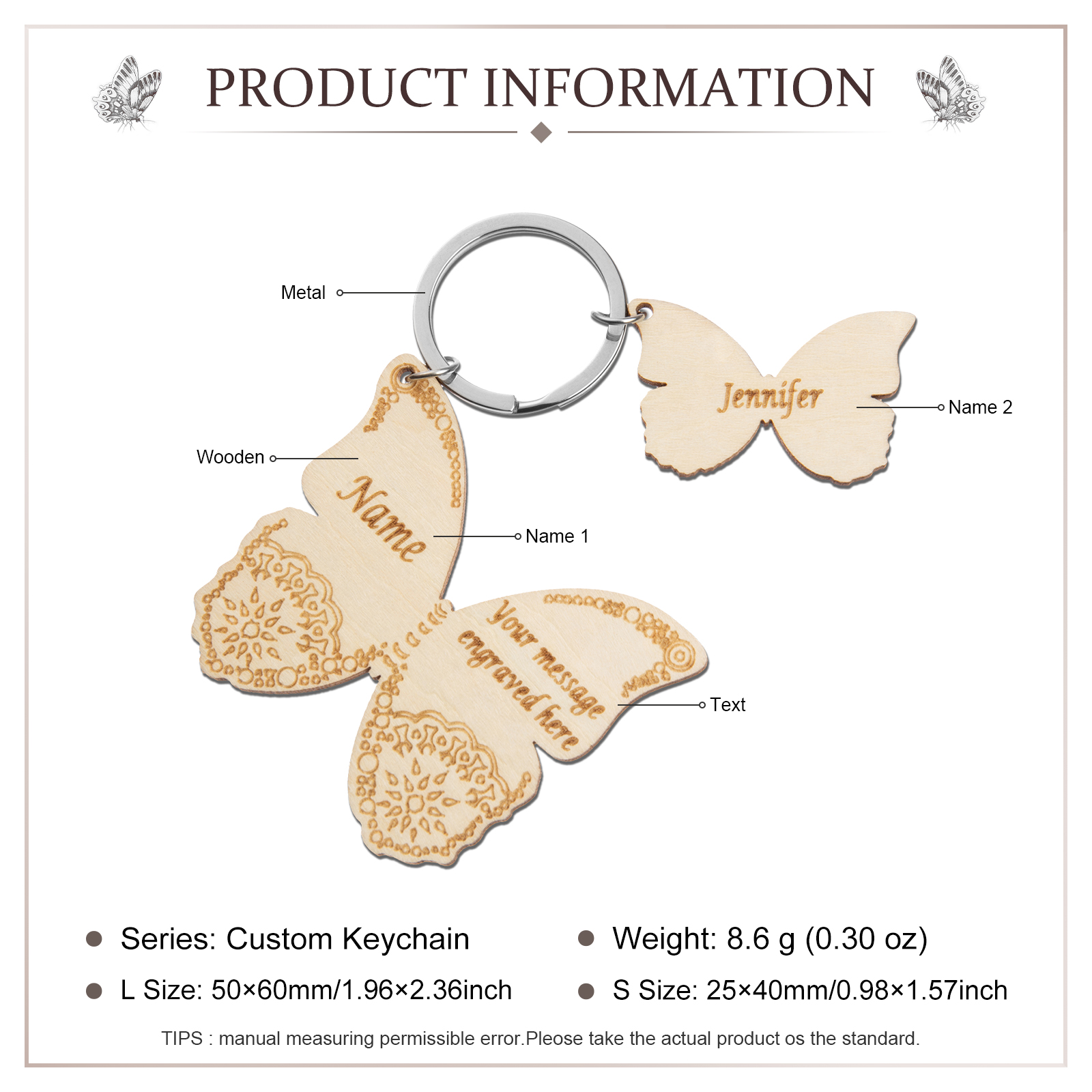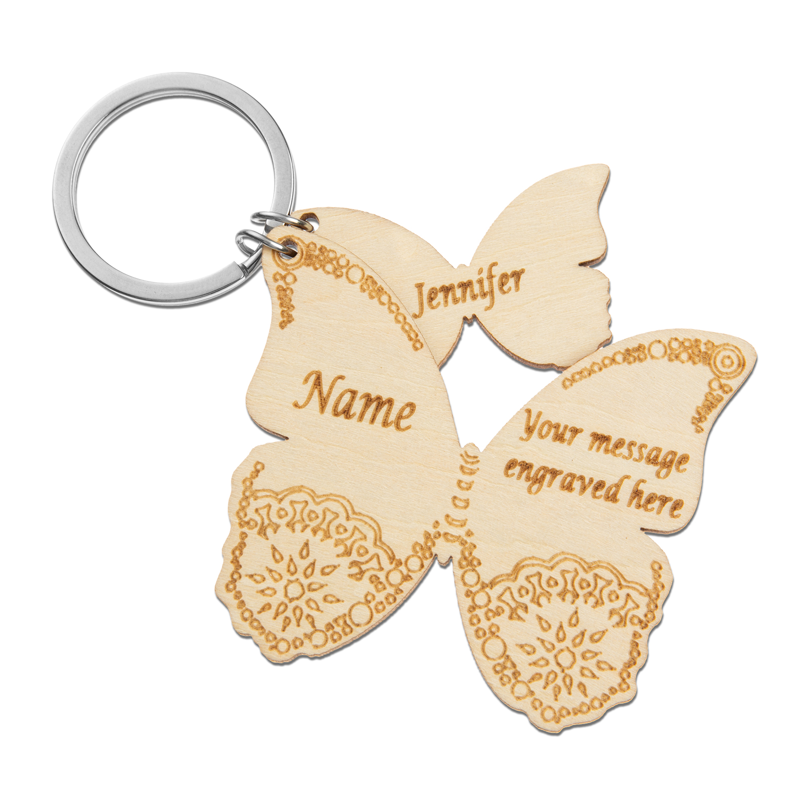 Personalised Wooden Butterfly Keyring Engraved 2 Names Keyring Gifts For Her