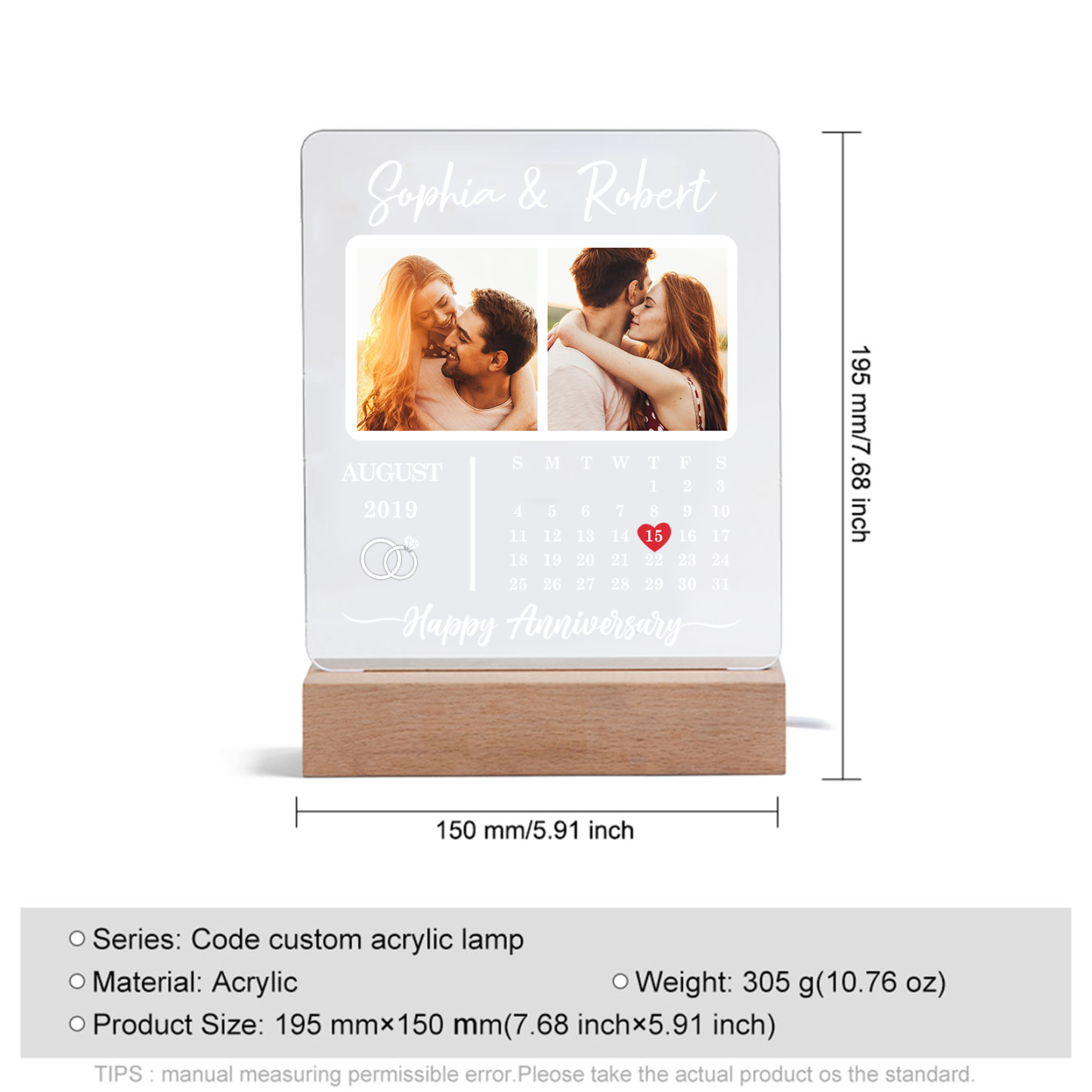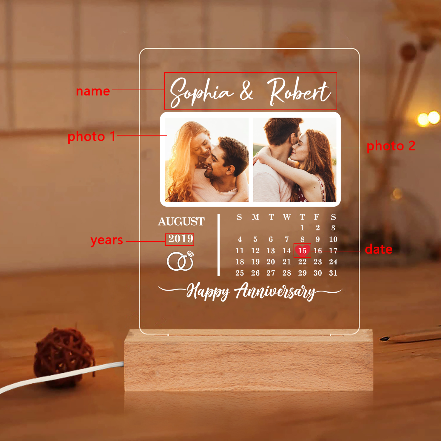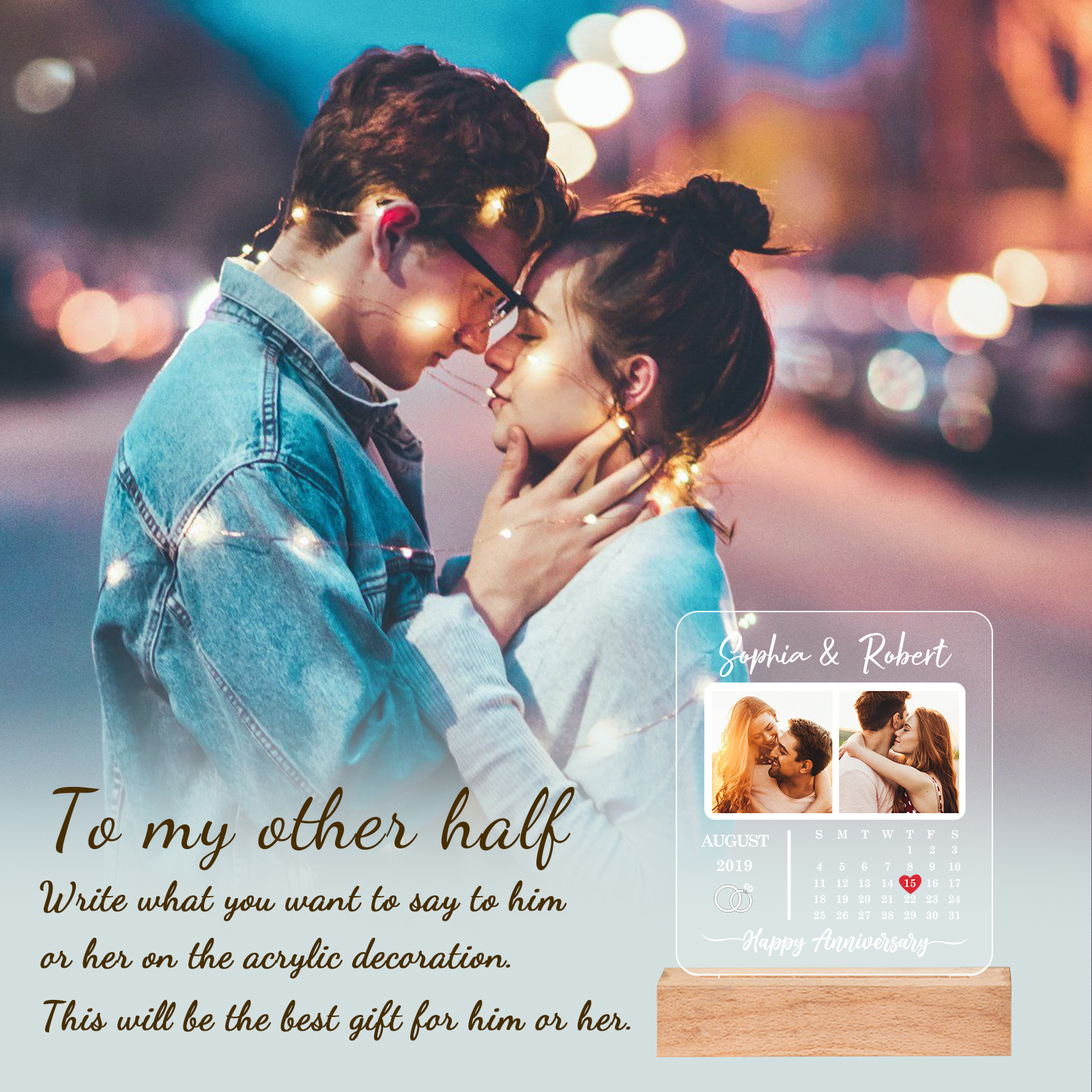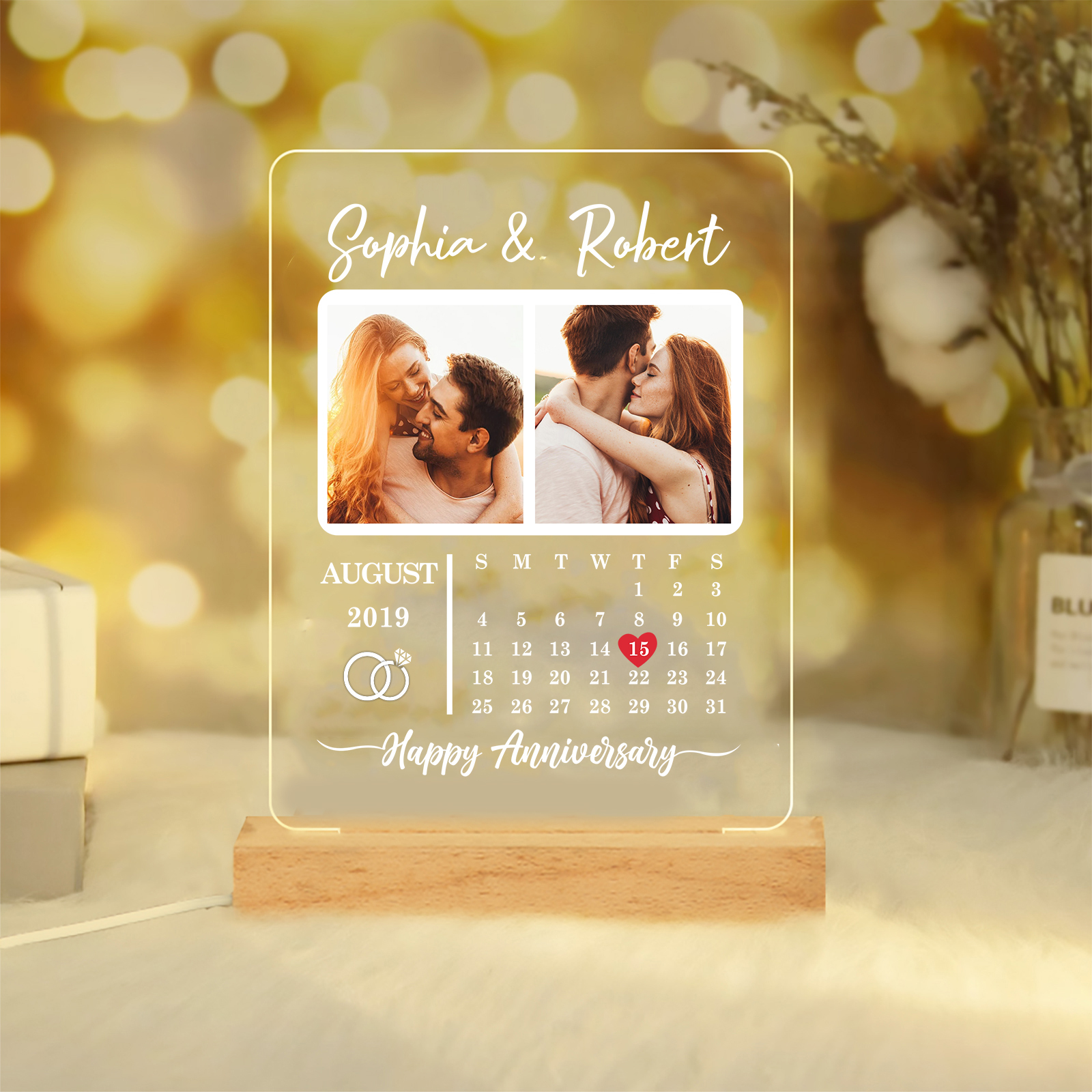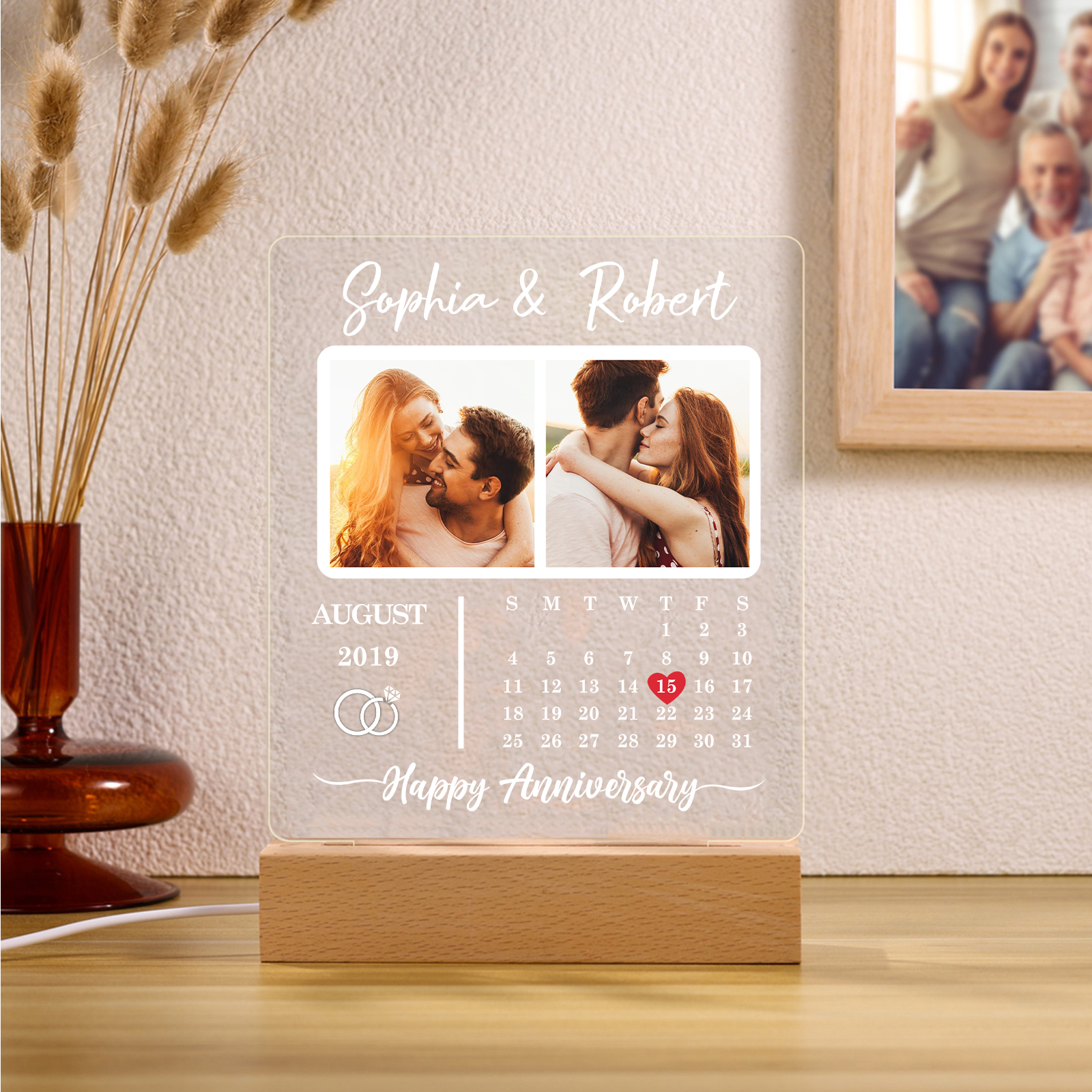 Photo-Personalised Couple Frame Custom Names LED Night Light Anniversary Gift For Couple