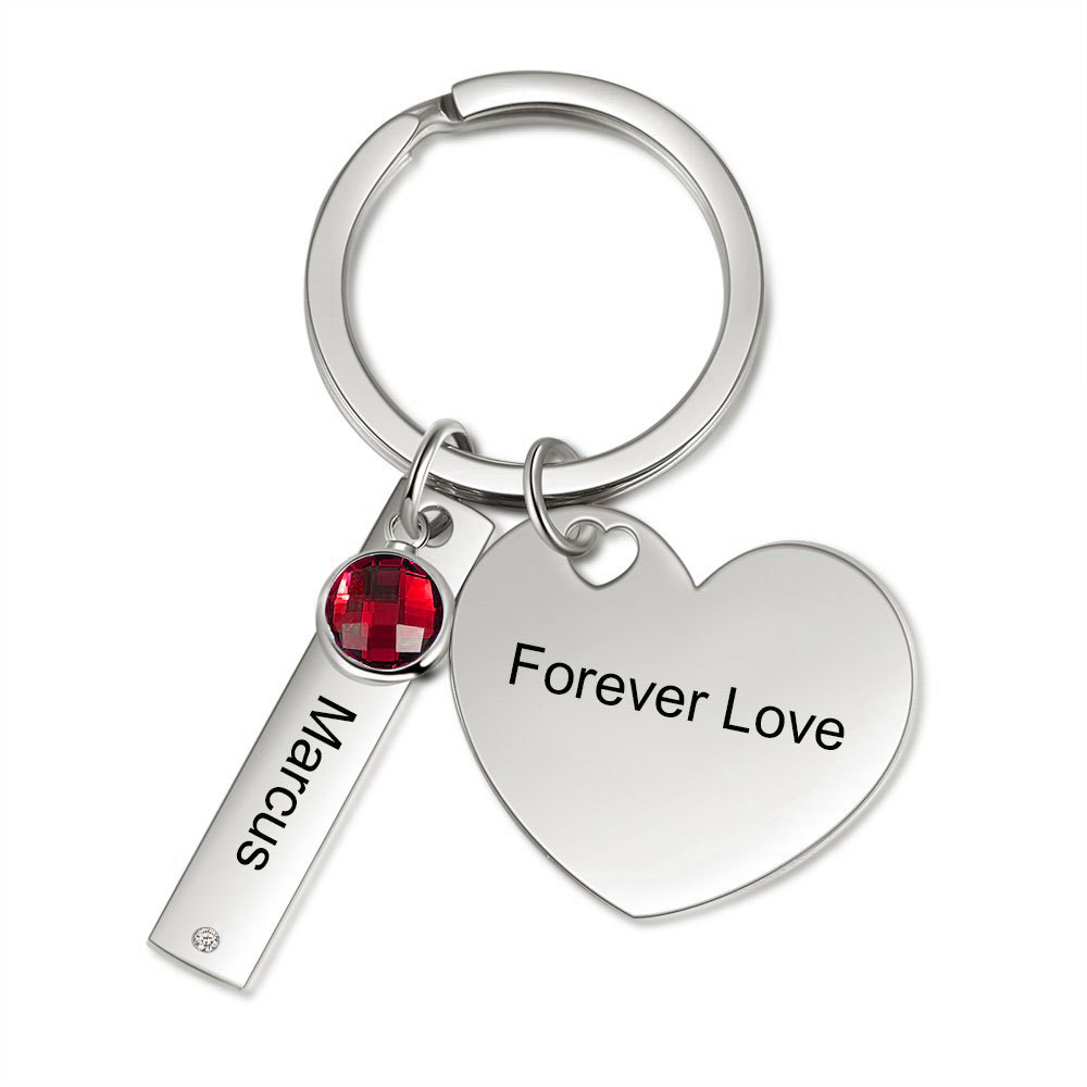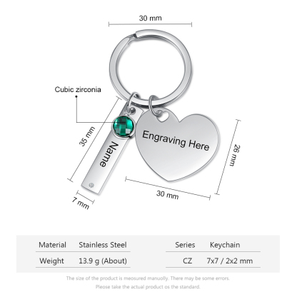 1 Name-Personalised Heart Keyring Custom Birthstone