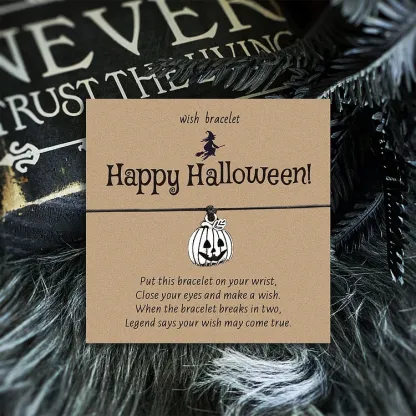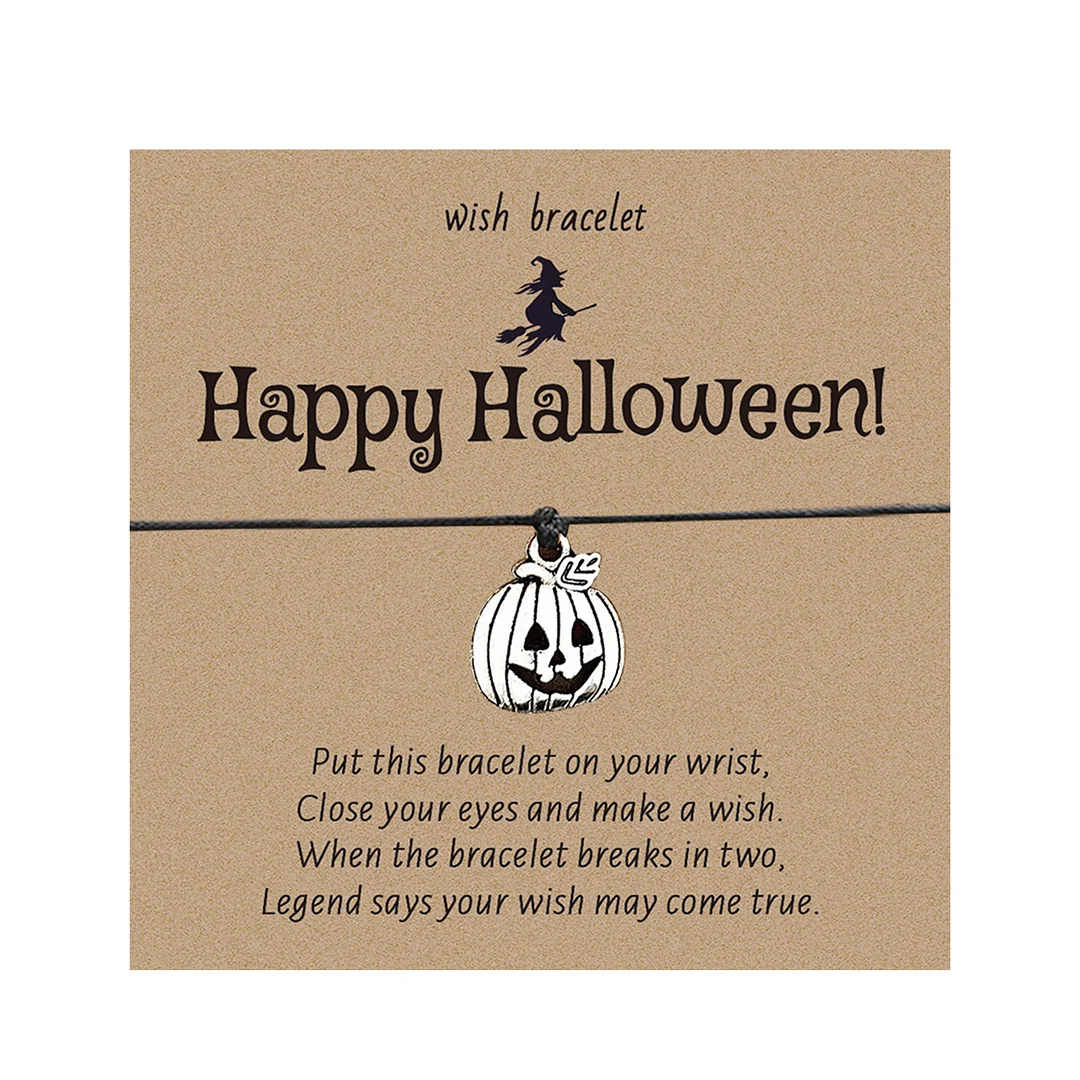 Pumpkin Bracelet Set-Happy Halloween Bracelet Wish Bracelet Set, Stainless Steel Adjustable Bracelets Halloween Gift for Kids Family Friends