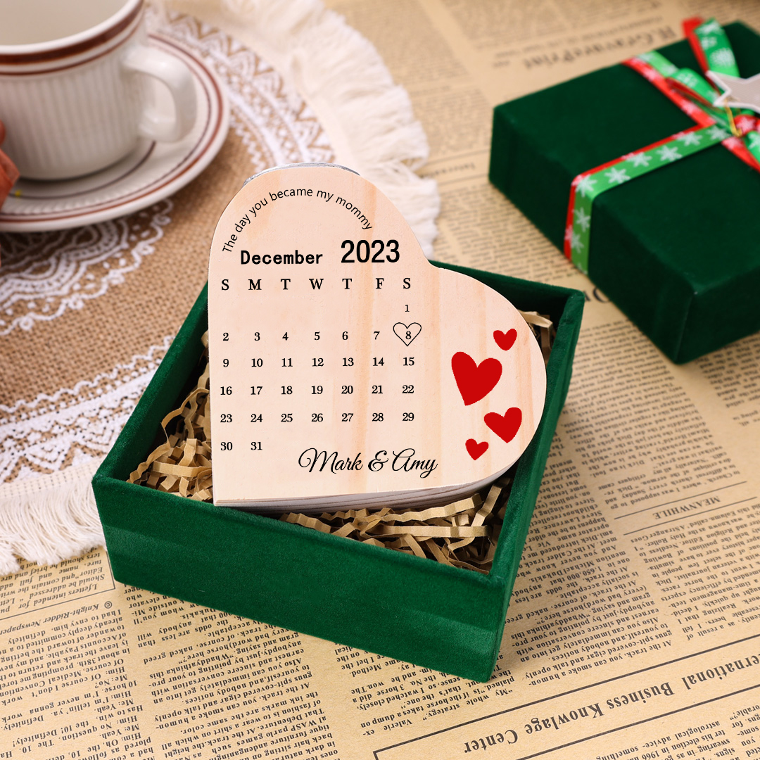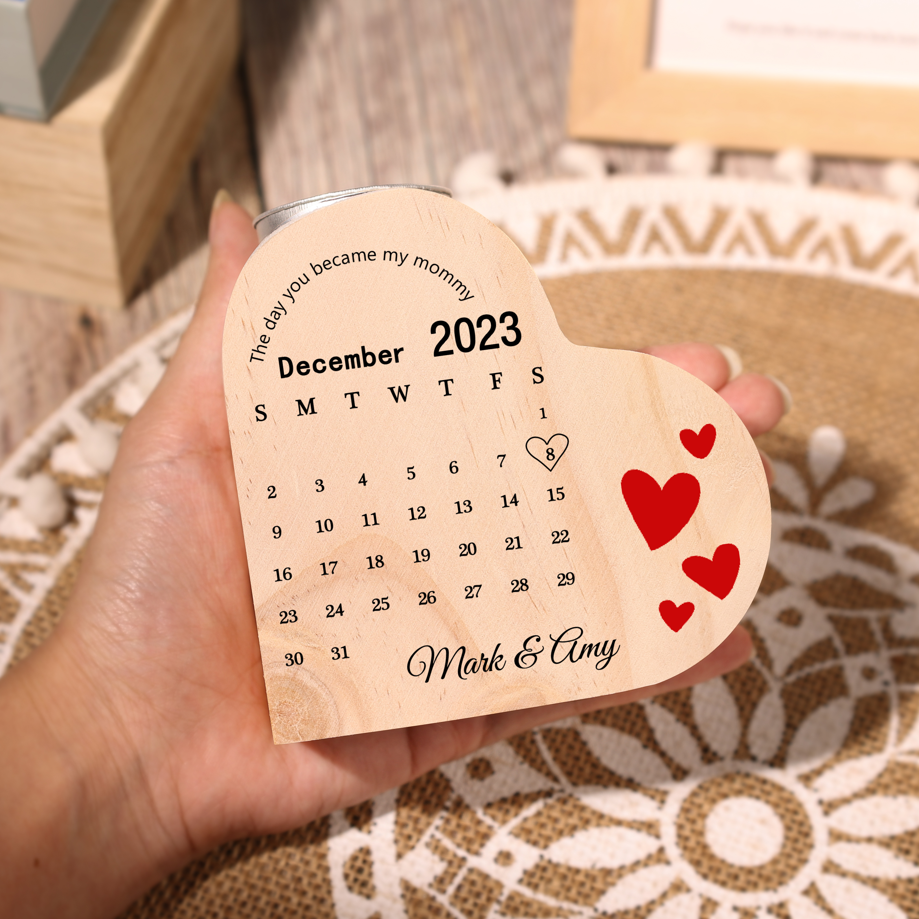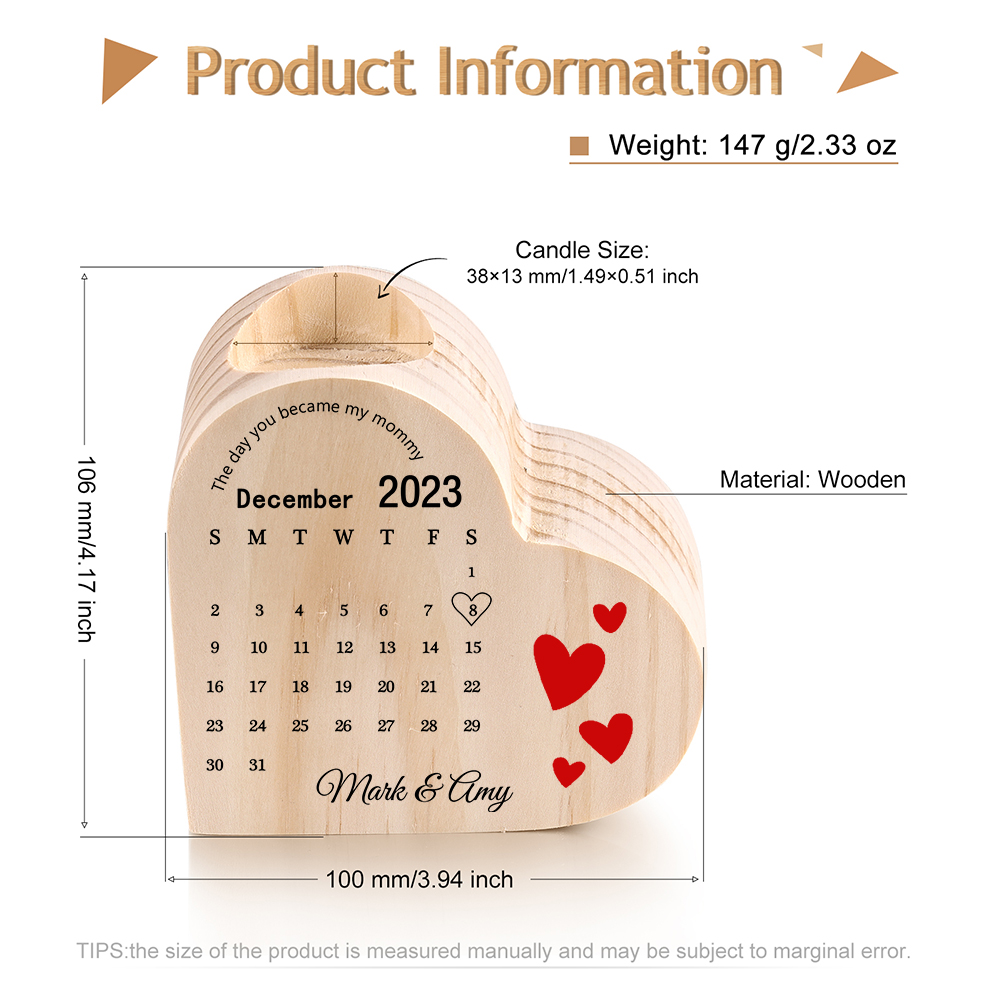 The Day You Beacame My Mommy Personalised Calendar Heart Candle Holder Wooden Candlestick