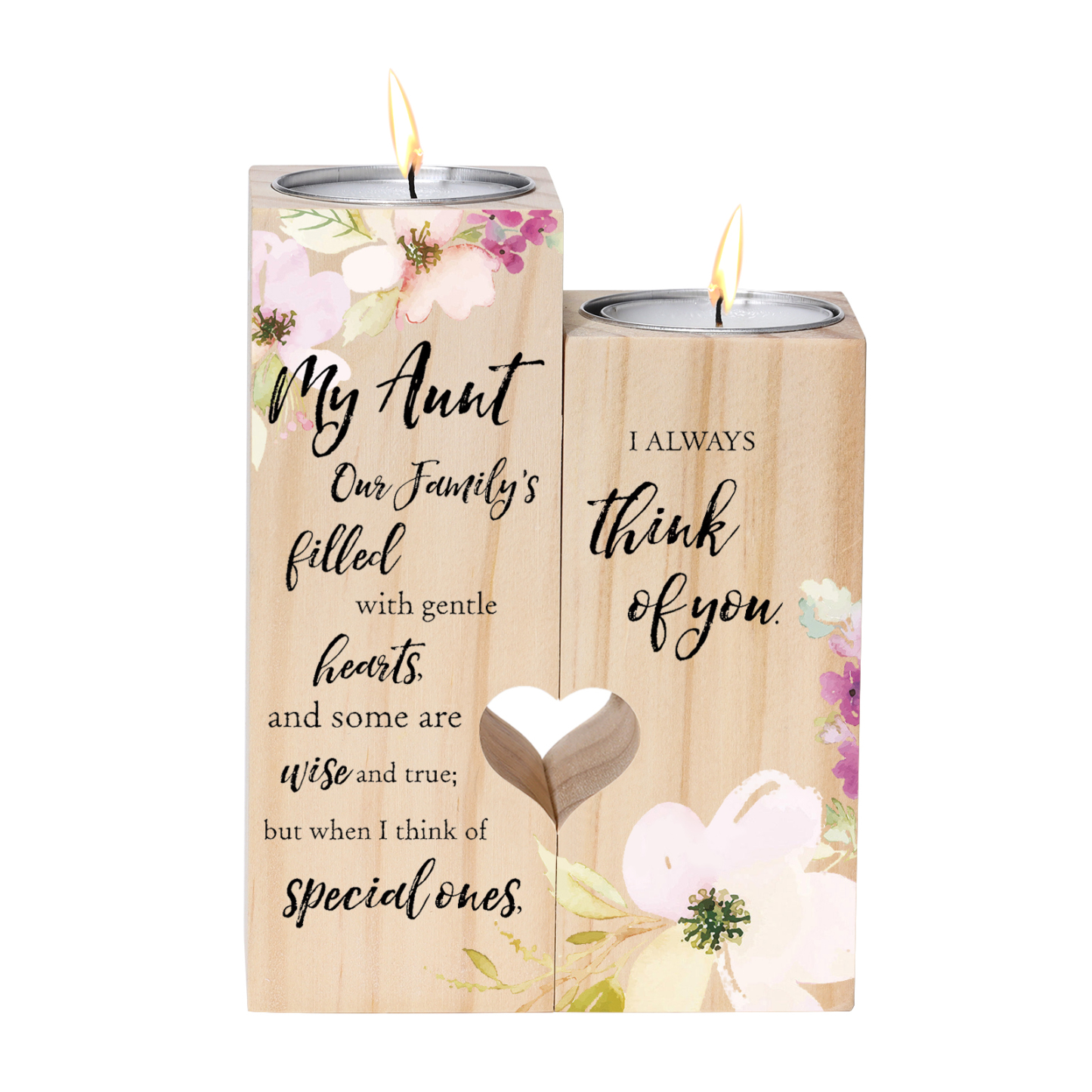 To My Aunt Flower Candlesticks- I Always Think of You-Wooden Candle Holder for Auntie