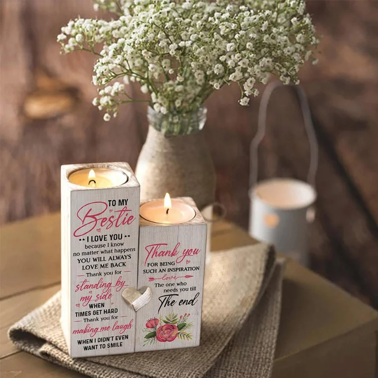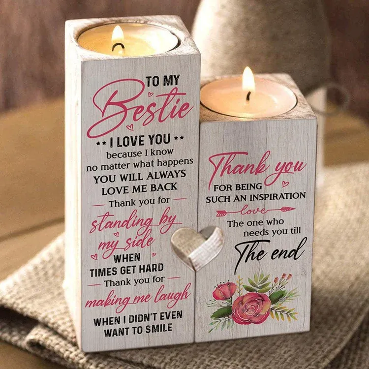To My Bestie Candle Holder Thank You For Making Me Laugh Sister Wooden Candlesticks