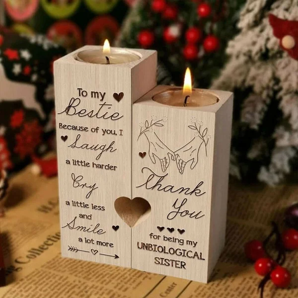 To My Bestie Thank You For Being My Unbiological Sister Candle Holder Wooden Candlesticks