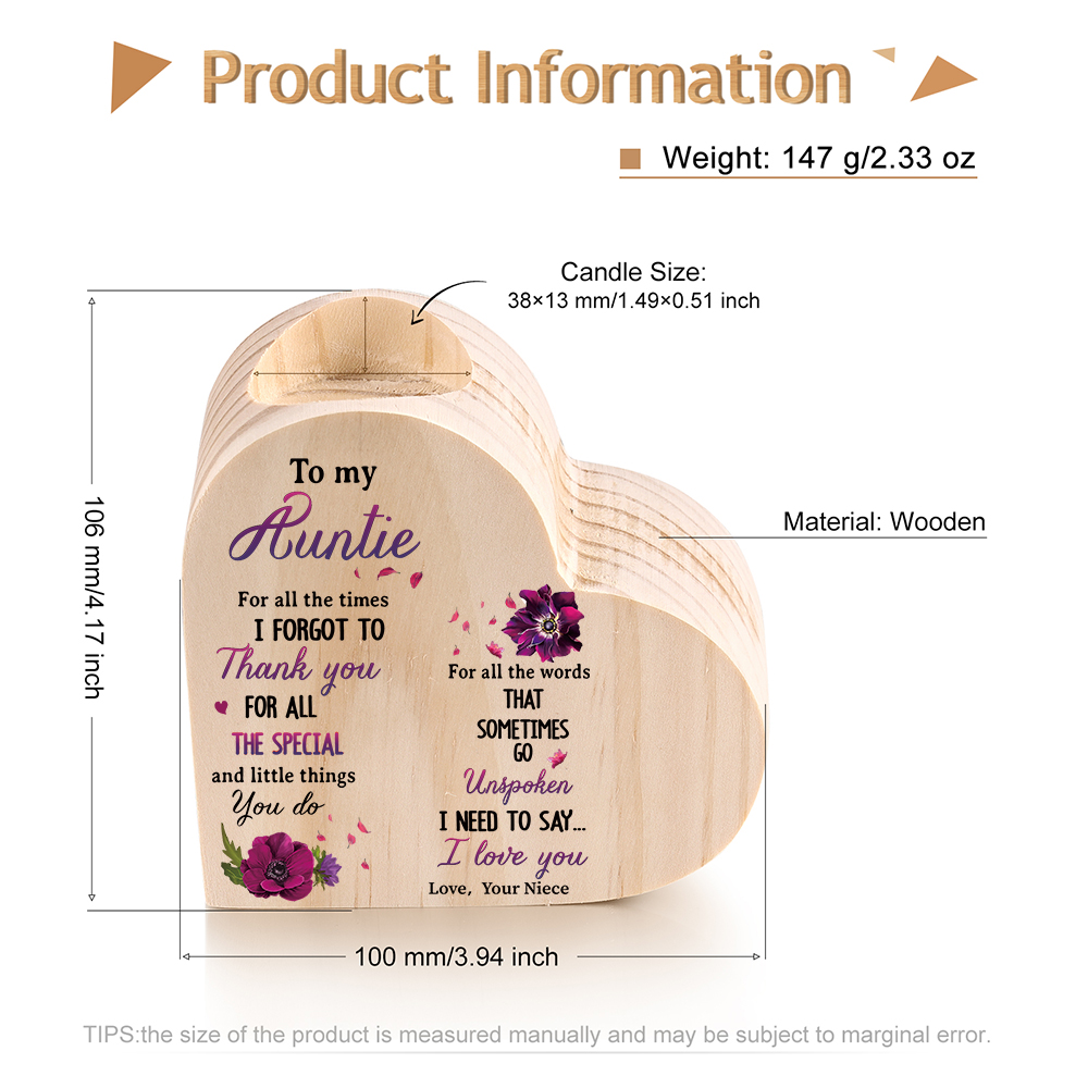 To My Auntie Violet Flower Candlesticks-I Need To Say I Love You-Heart Wooden Candle Holder from Niece