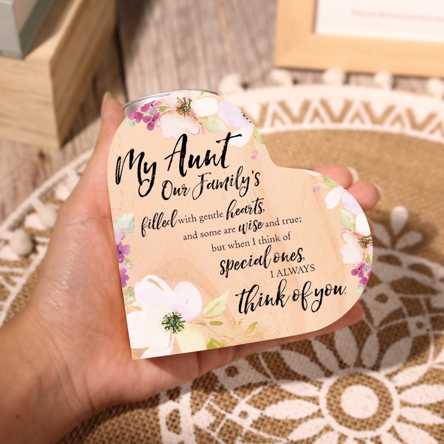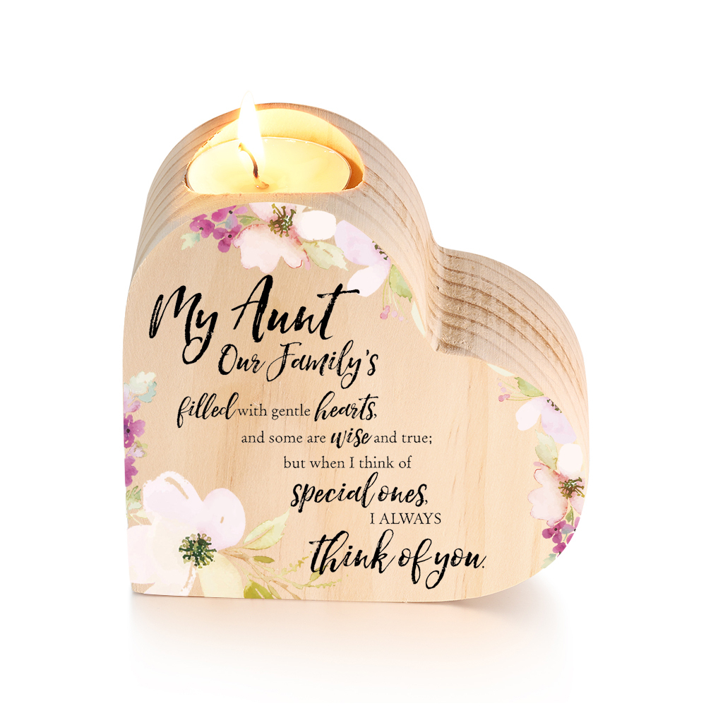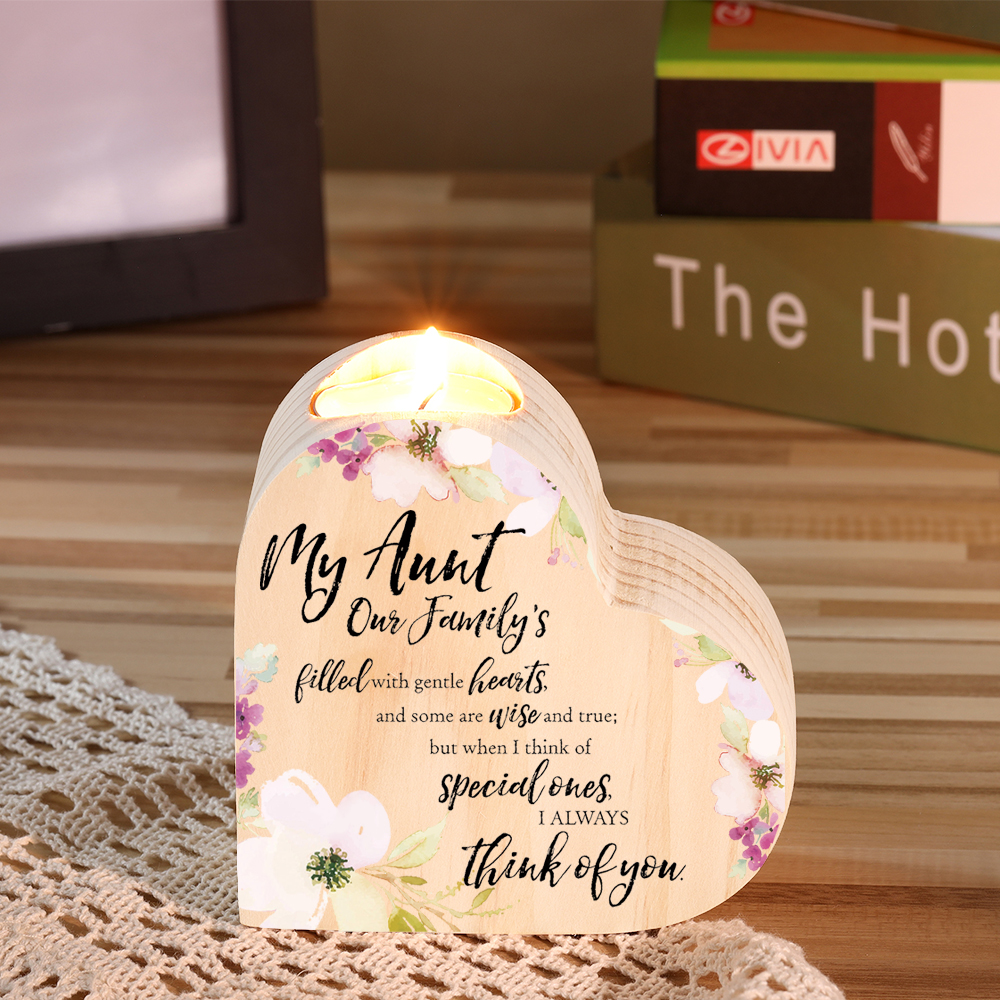 To My Aunt Flower Candlesticks-I Always Think of You-Heart Wooden Candle Holder for Auntie