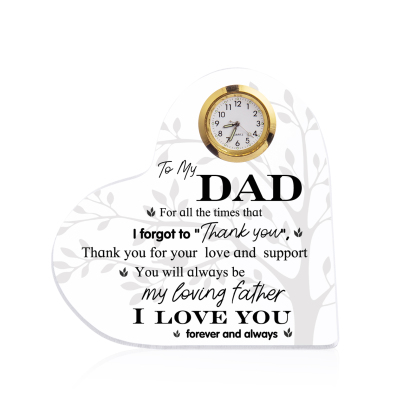 To My Dad Acrylic Heart Clock Keepsake Heart Sign - For all the times that I forgot to Thank you