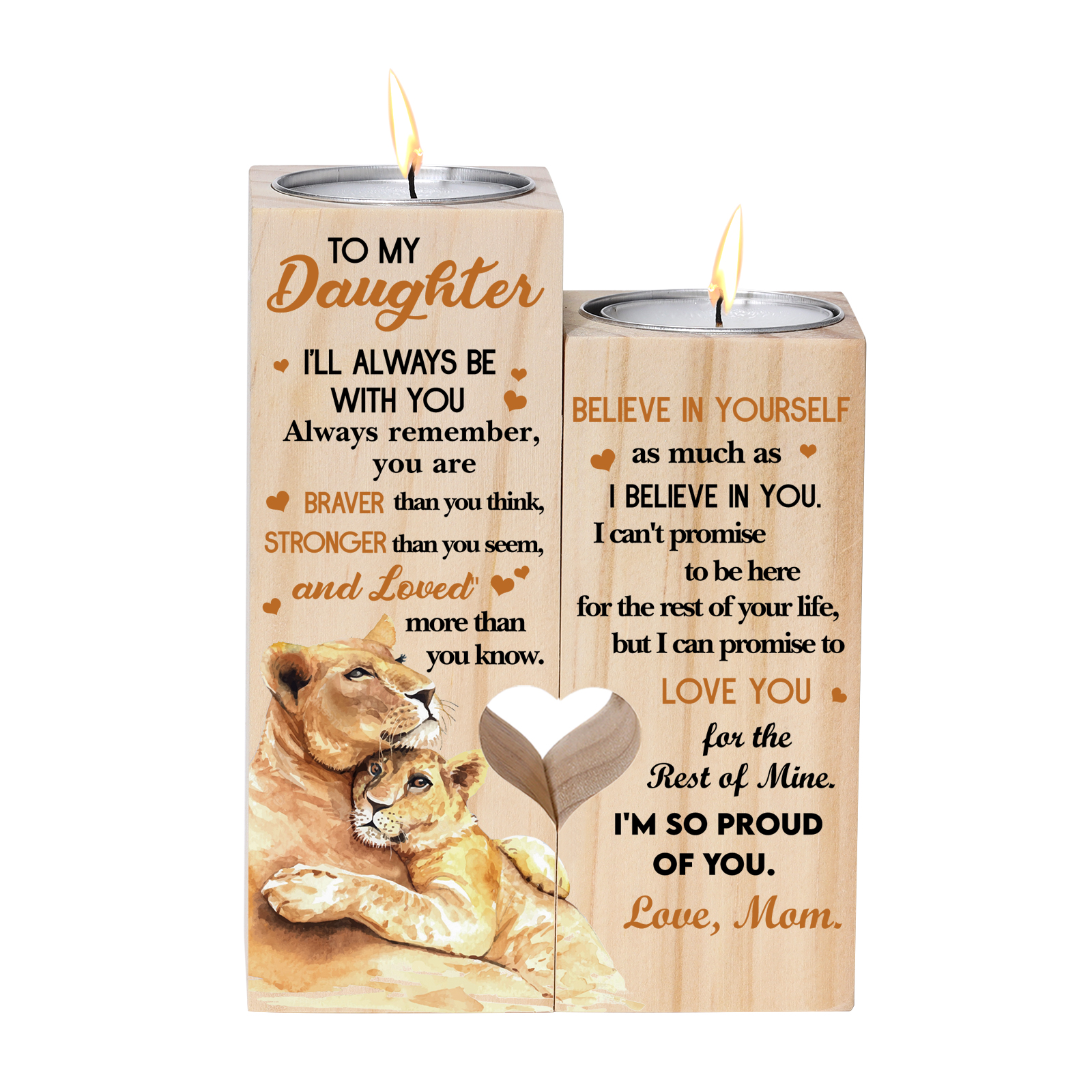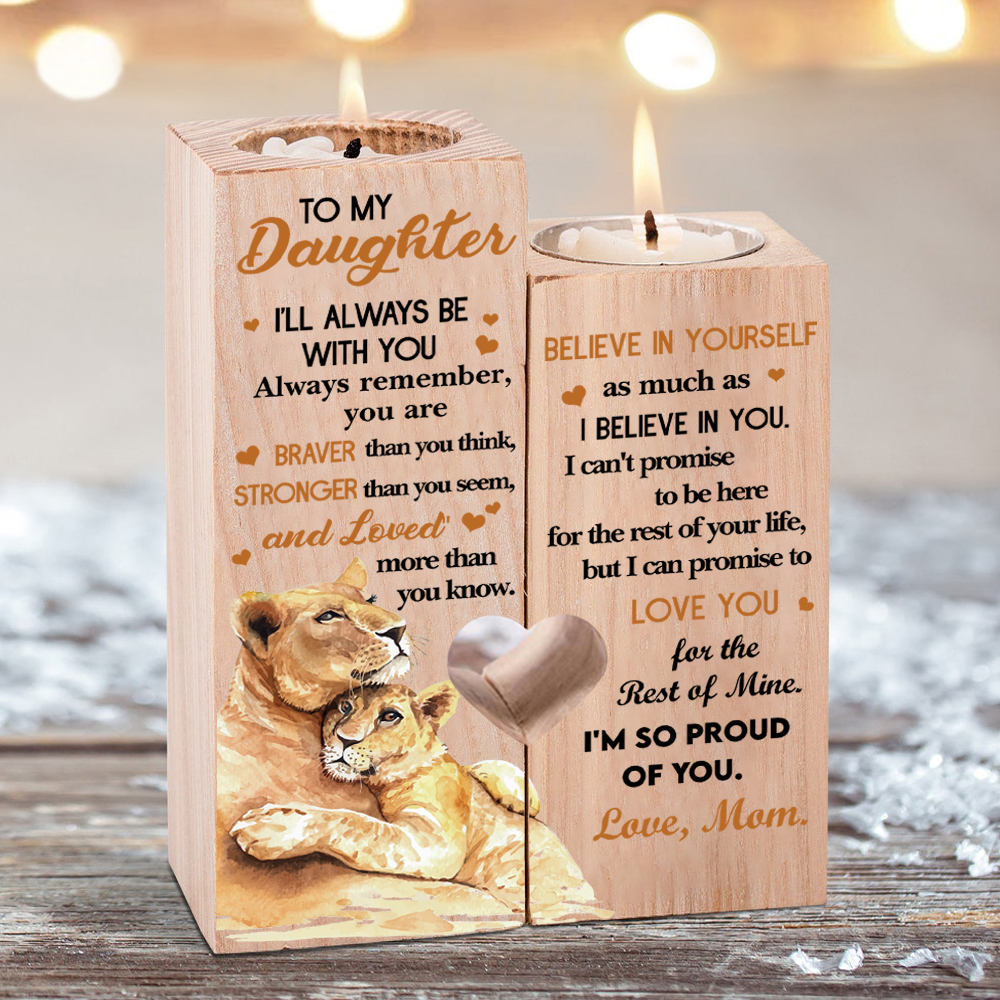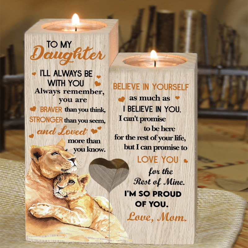 To My Daughter Candle Holder "I'LL ALWAYS BE WITH YOU" Wooden Candlestick