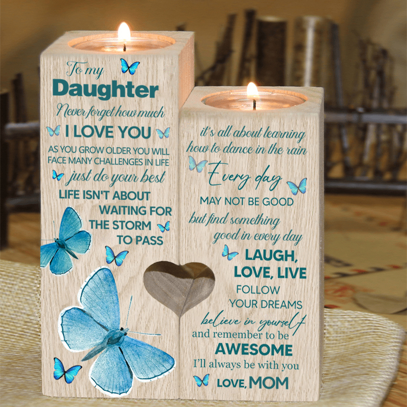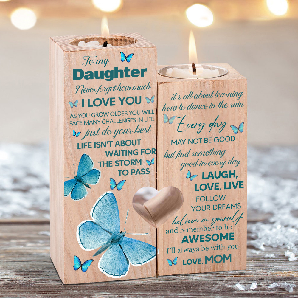 To My Daughter Candle Holder "Remember To Be Awesome" Wooden Candlestick