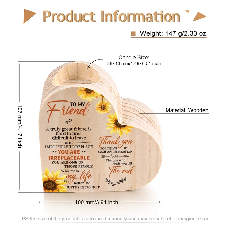 To My Friend Heart Candle Holder Thank you for being such an inspiration Wooden Candlestick