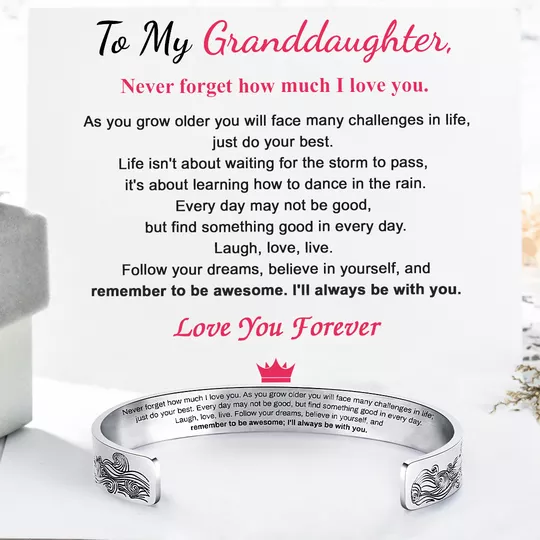 To My Granddaughter Cuff Bangle Bracelet "I Will Always Be With You"