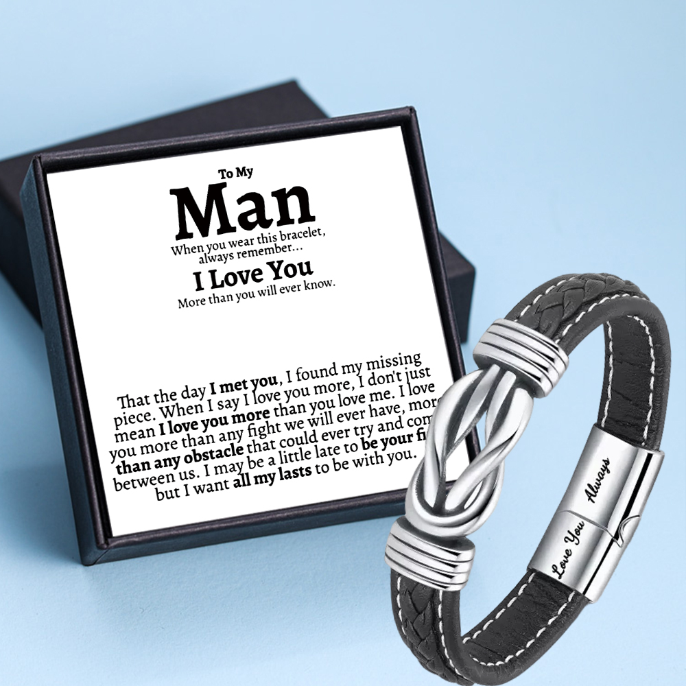 To My Man Infinity Knot Leather Bracelet Set With Gift Card Gift Set-Inspirational Special Gift For Him