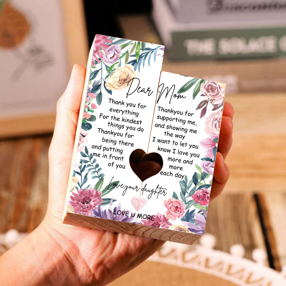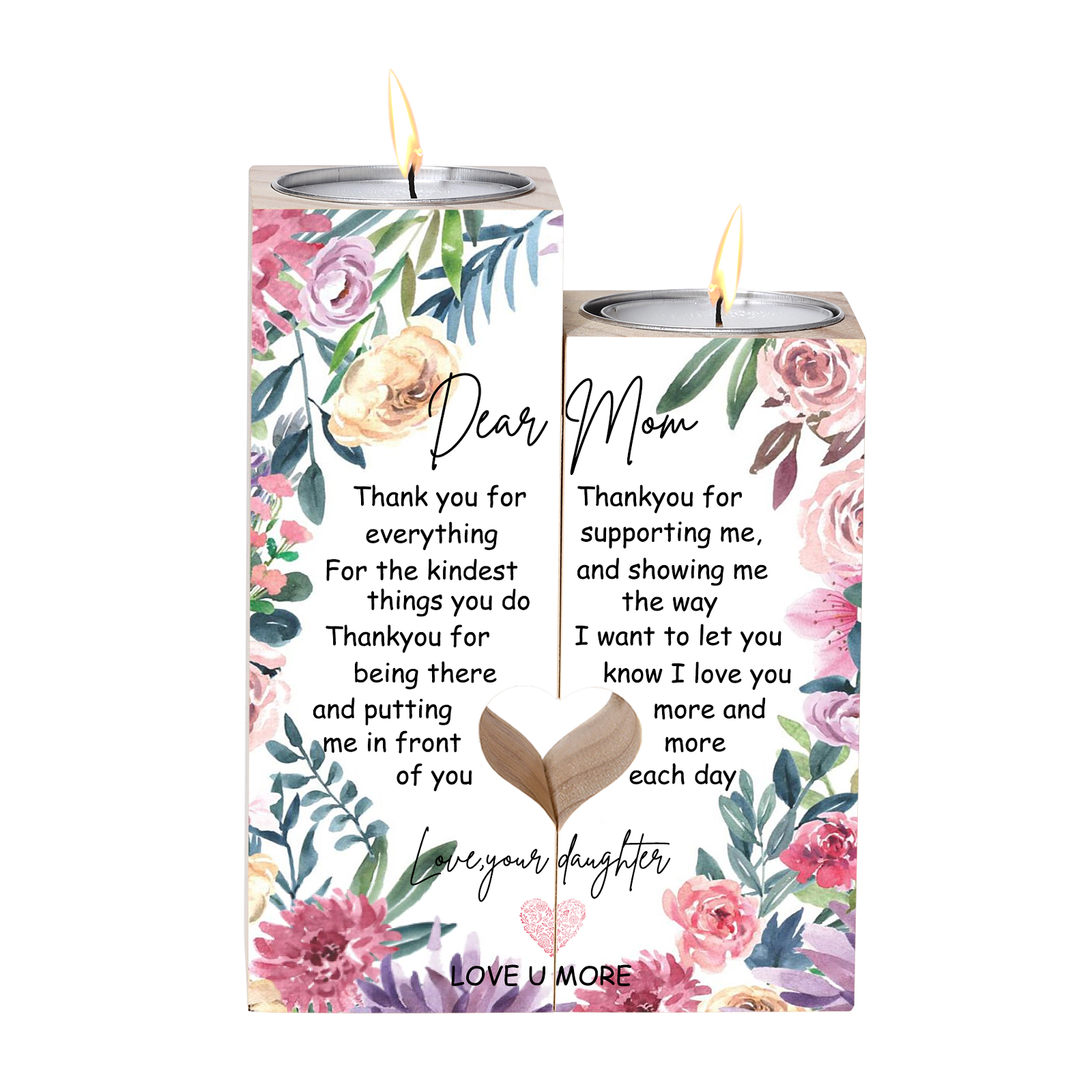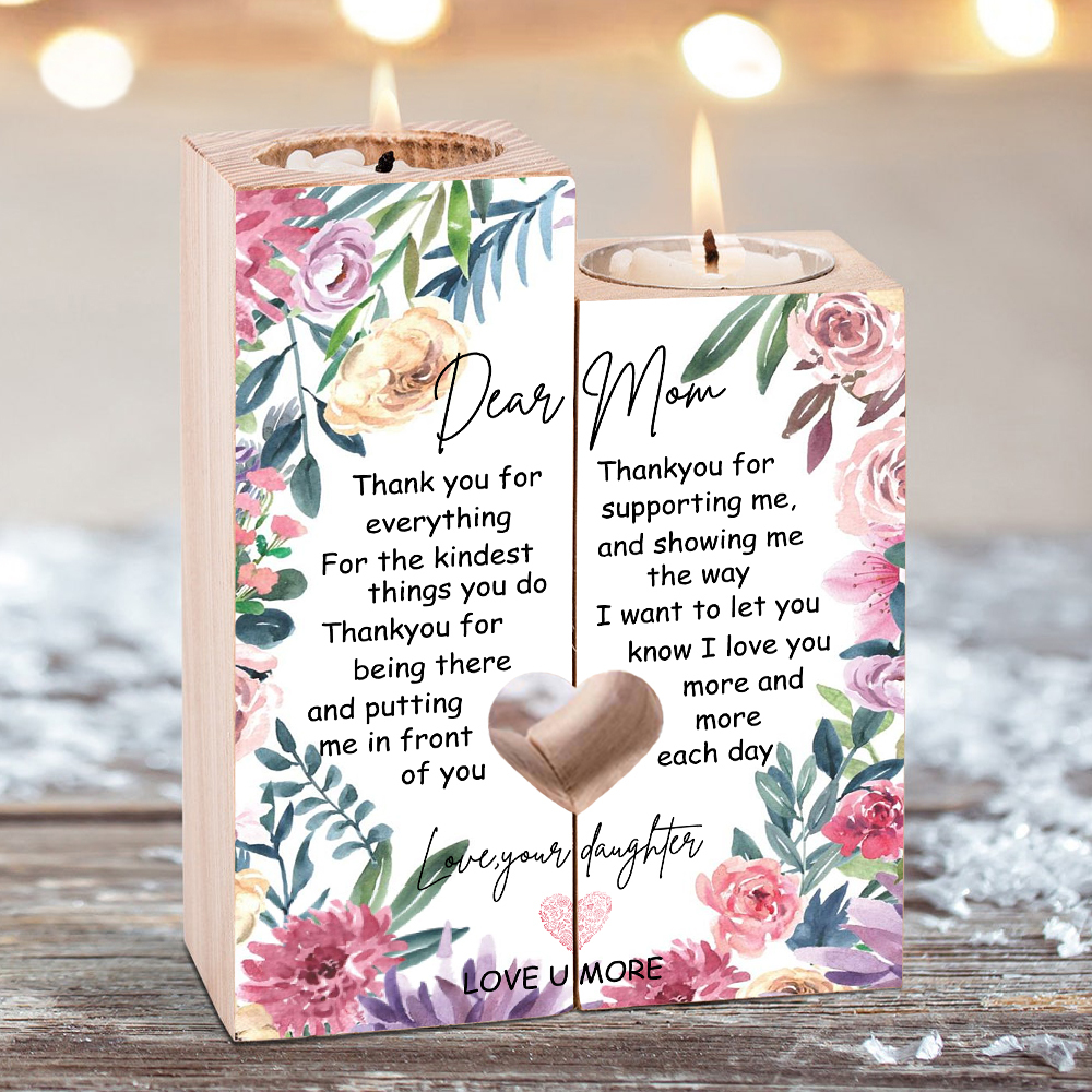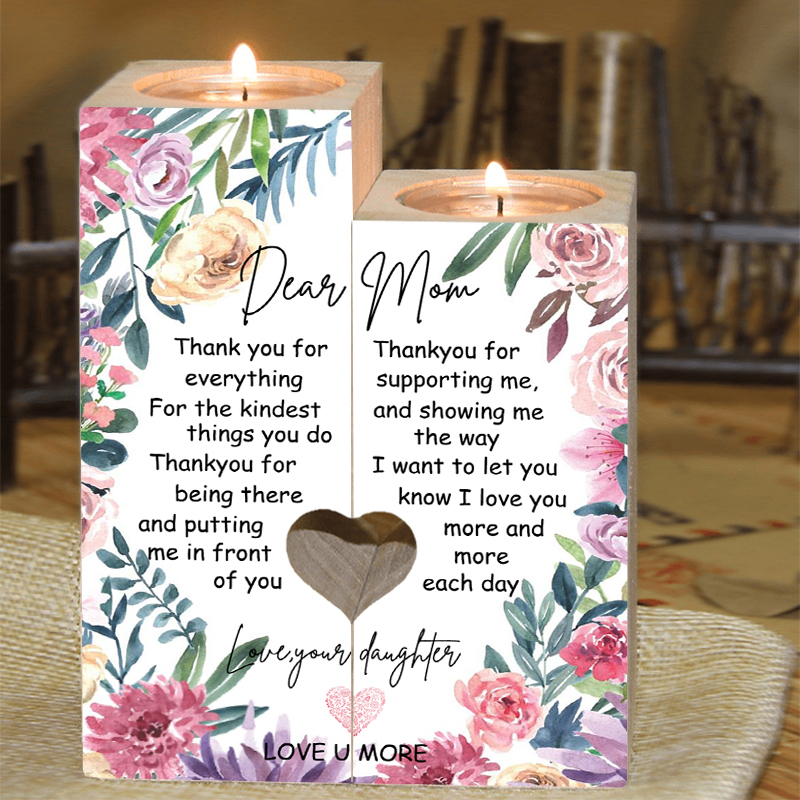To My Mom Candle Holder "Thank you for everything" Wooden Candlestick