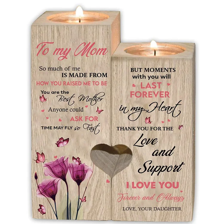 To My Mom Heart Candle Holder "You are the best mother anyone could ask for" Wooden Candlestick