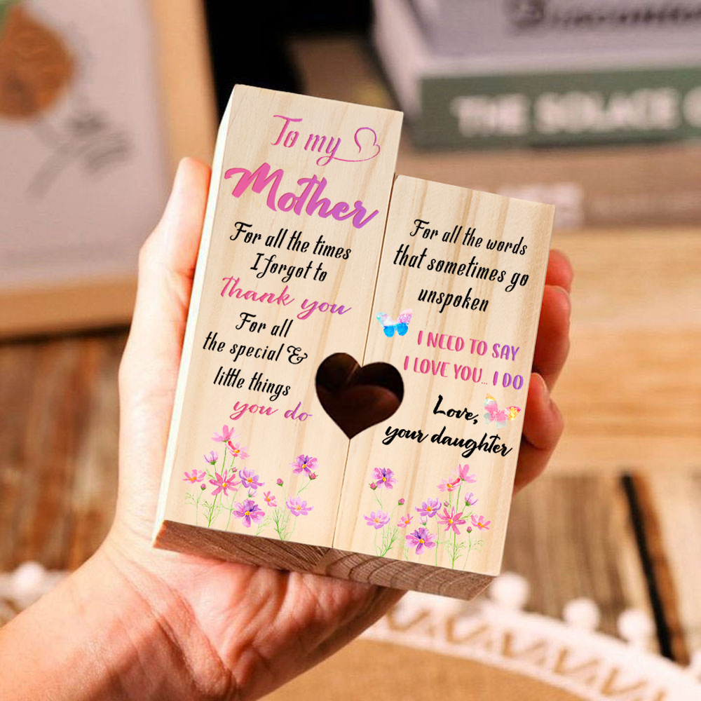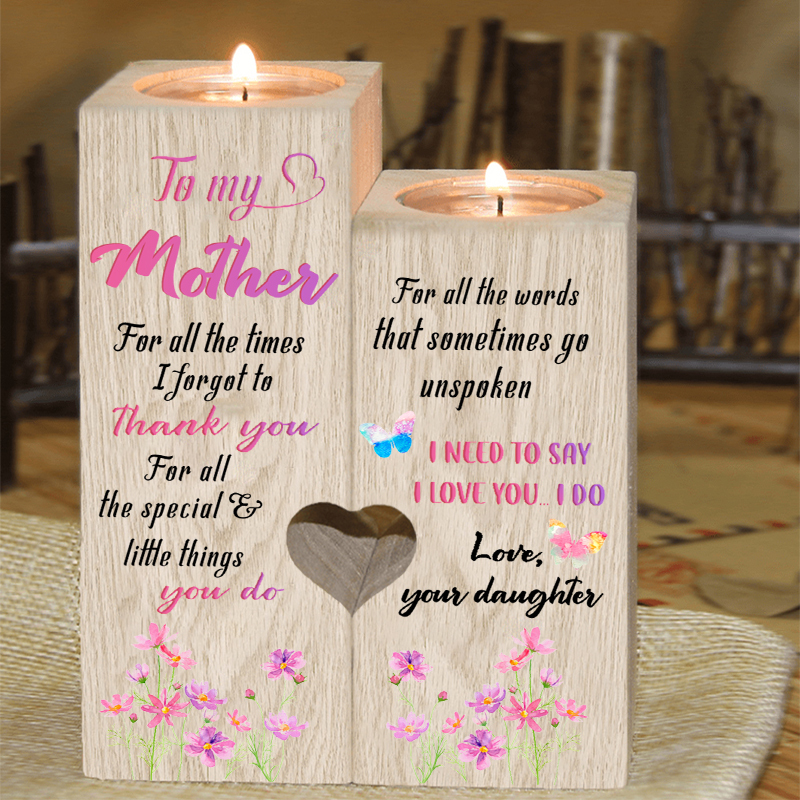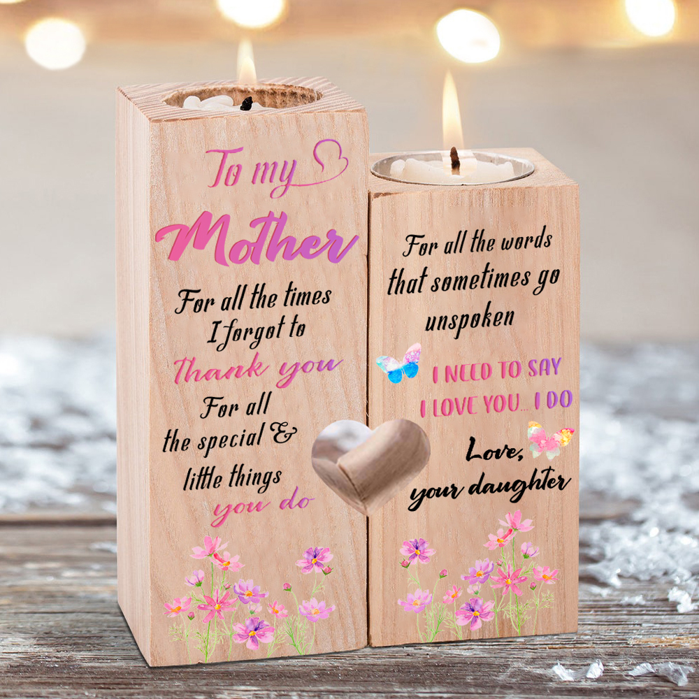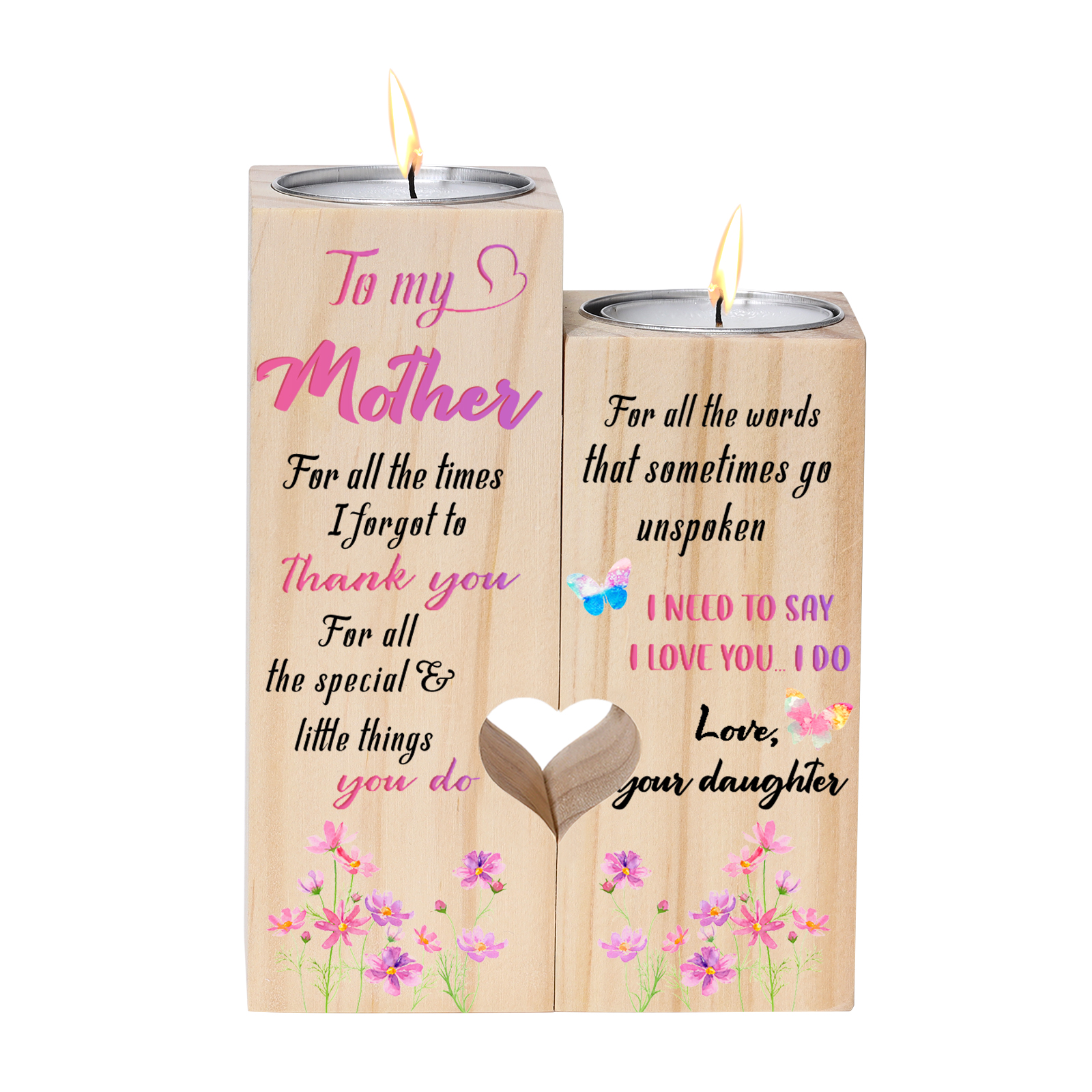 To My Mother Candle Holder Wooden Candlestick "I NEED TO SAY I LOVE YOU"