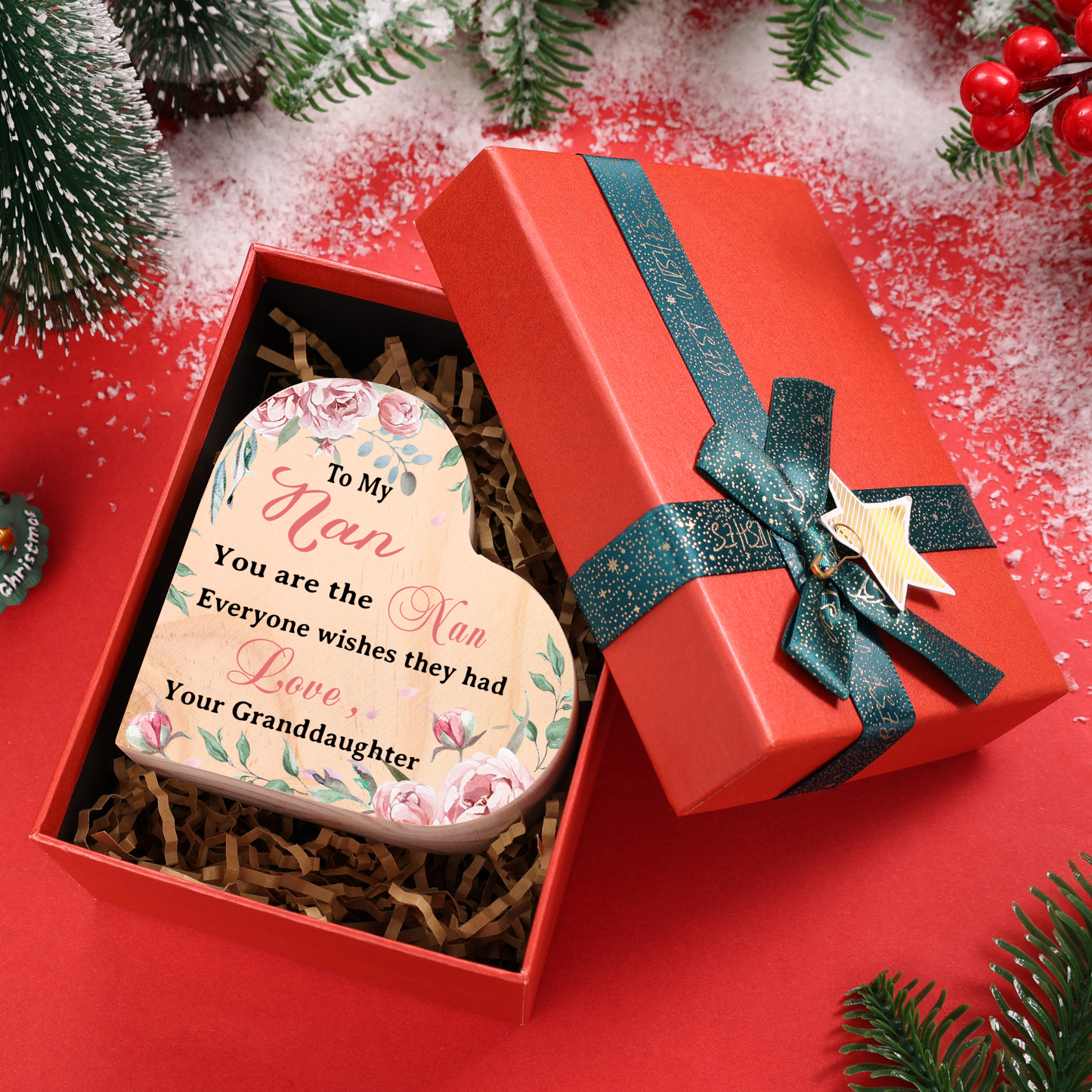 To My Nan Customize Text Flower Candlesticks-I Love You-Heart Wooden Candle Holder from Granddaughter