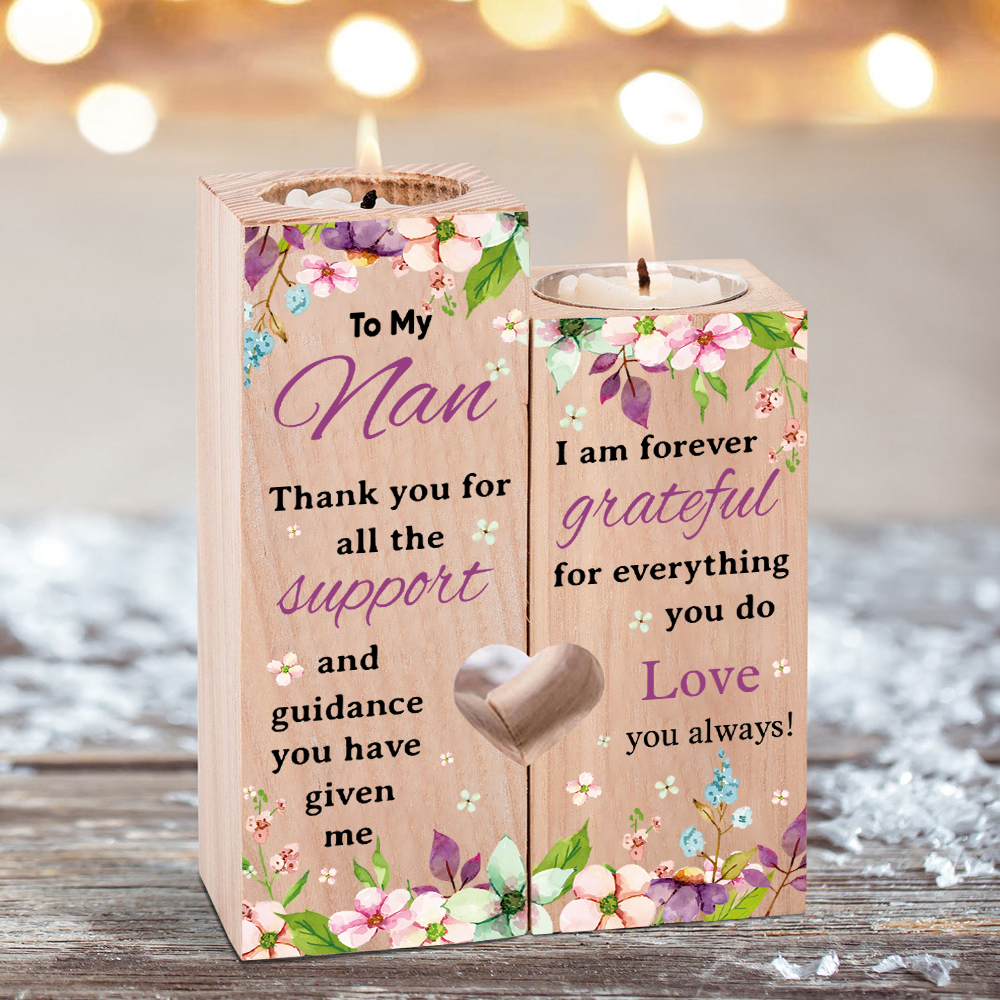 To My Nan Flower Candlesticks-Grateful For Everything You Do-Wooden Candle Holder For Nan