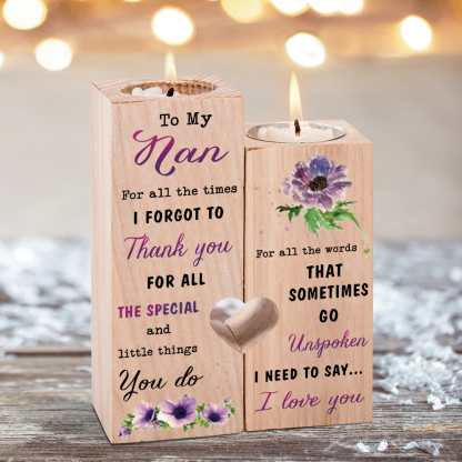 To My Nan Flower Candlesticks-I Need To Say I Love You-Wooden Candle Holder For Nan