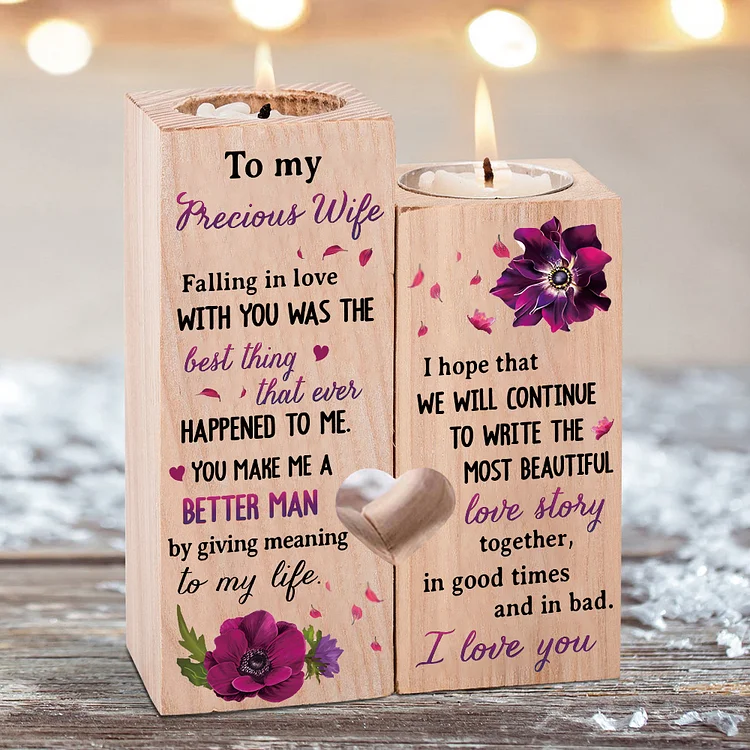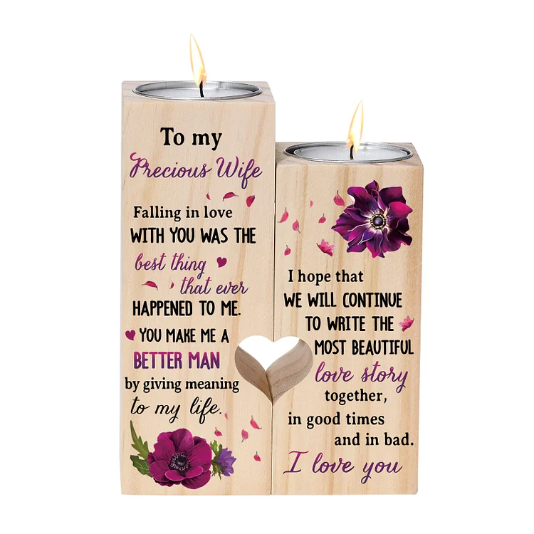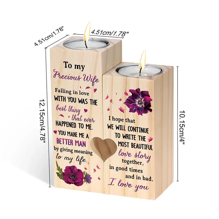 To My Precious Wife Candle Holder Wooden Candlesticks Valentines Gift "You make me a better man"
