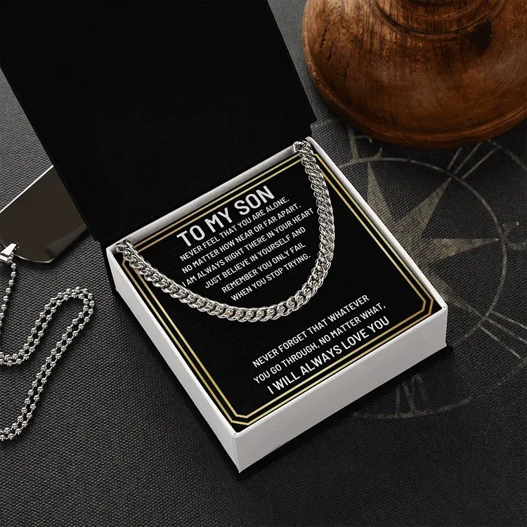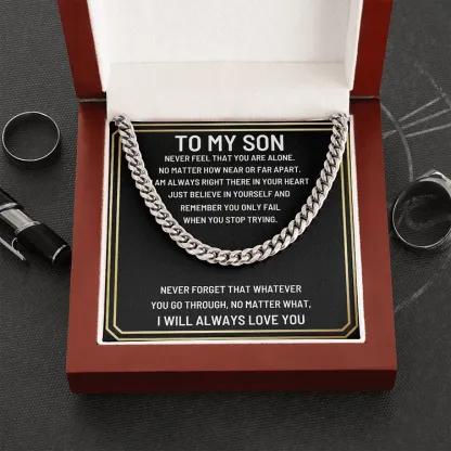 To My Son Cuban Chain Necklace Set With Gift Card Gift Box-Men Stainless Steel Necklace Warm Gift
